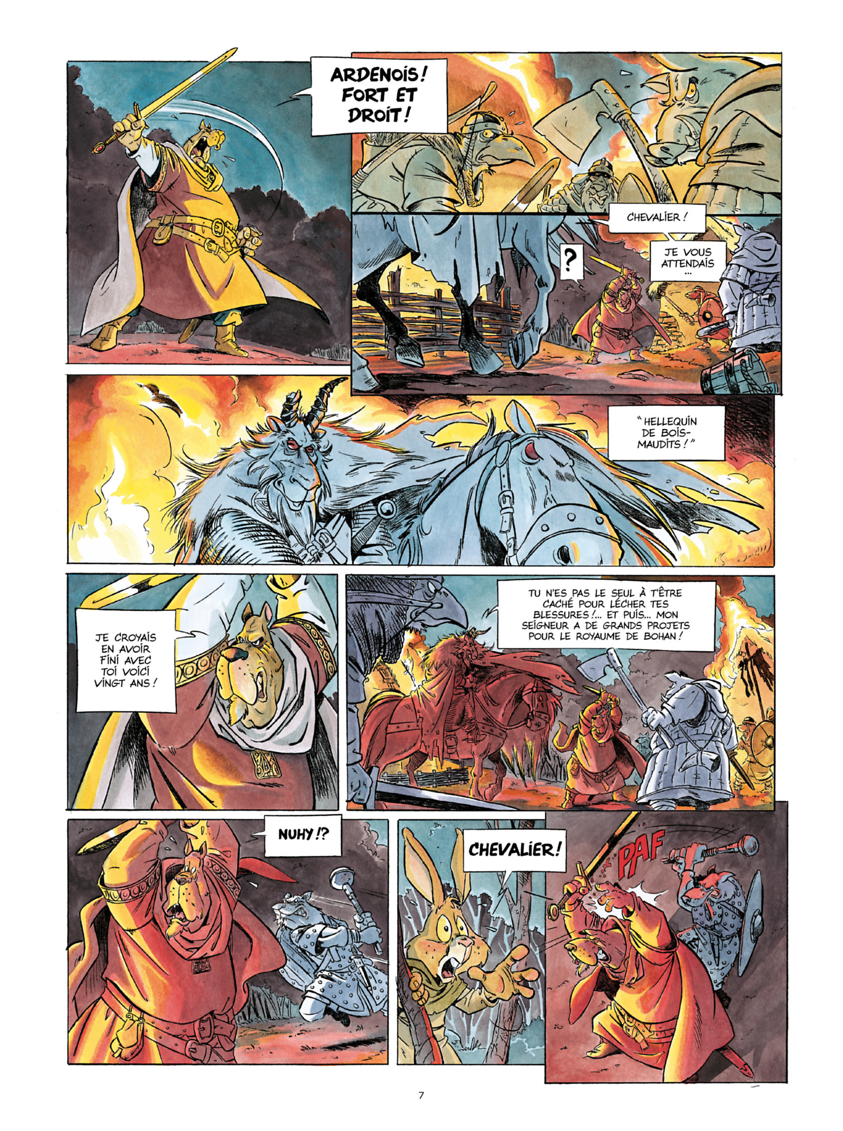 Alors que le petit village de Chassenoix s’endort dans les derniers jours de l’été, une bande de maraudeurs survient et tue le chevalier d’Ardenois, l’un des quatre compagnons de l’aube qui, vingt ans plus tôt, a combattu Nuhy, le seigneur à l’armure noire. Témoin de la scène, Garen, un jeune homme à la tête farcie de récits épiques et de légendes dorées, part avertir le Roi du danger imminent qui le guette, lui, mais aussi les royaumes de Bohan, Herbeutagne et Valdor; car il semble désormais certain que quelqu’un veut relever Nuhy de ses cendres.