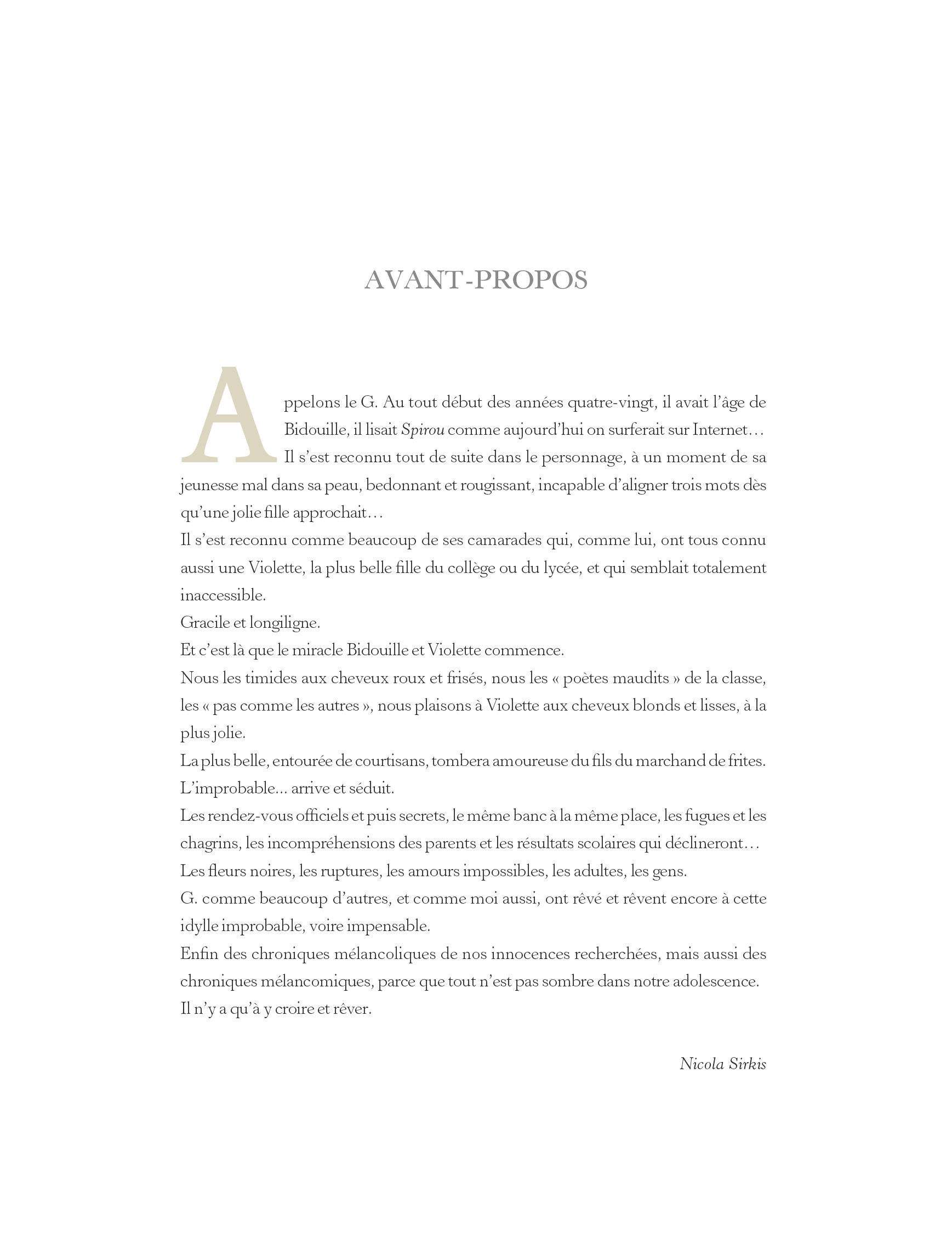 Avant Yslaire, il y eut Hislaire, l'auteur romantique de Bidouille et Violette. Cette histoire d’amour fou entre deux adolescents sensibles, le petit rondouillard timide et la plus belle fille du lycée, marqua le début des années 80 en paraissant dans les pages de l’hebdomadaire belge Spirou. En effet, au milieu de séries classiques d’aventures ou d’humour, Bidouille et Violette mettait de façon avant-gardiste au cœur du récit le vécu, le quotidien, transcendés par la poésie et l’émotion. La série vécut le temps de quatre volumes, qui furent ensuite rassemblés en intégrale par Glénat au milieu des années 90. Reflet des premières armes d'un auteur qui allait se révéler auprès d'un public beaucoup plus vaste avec Sambre, l’ouvrage ne laissa personne insensible.