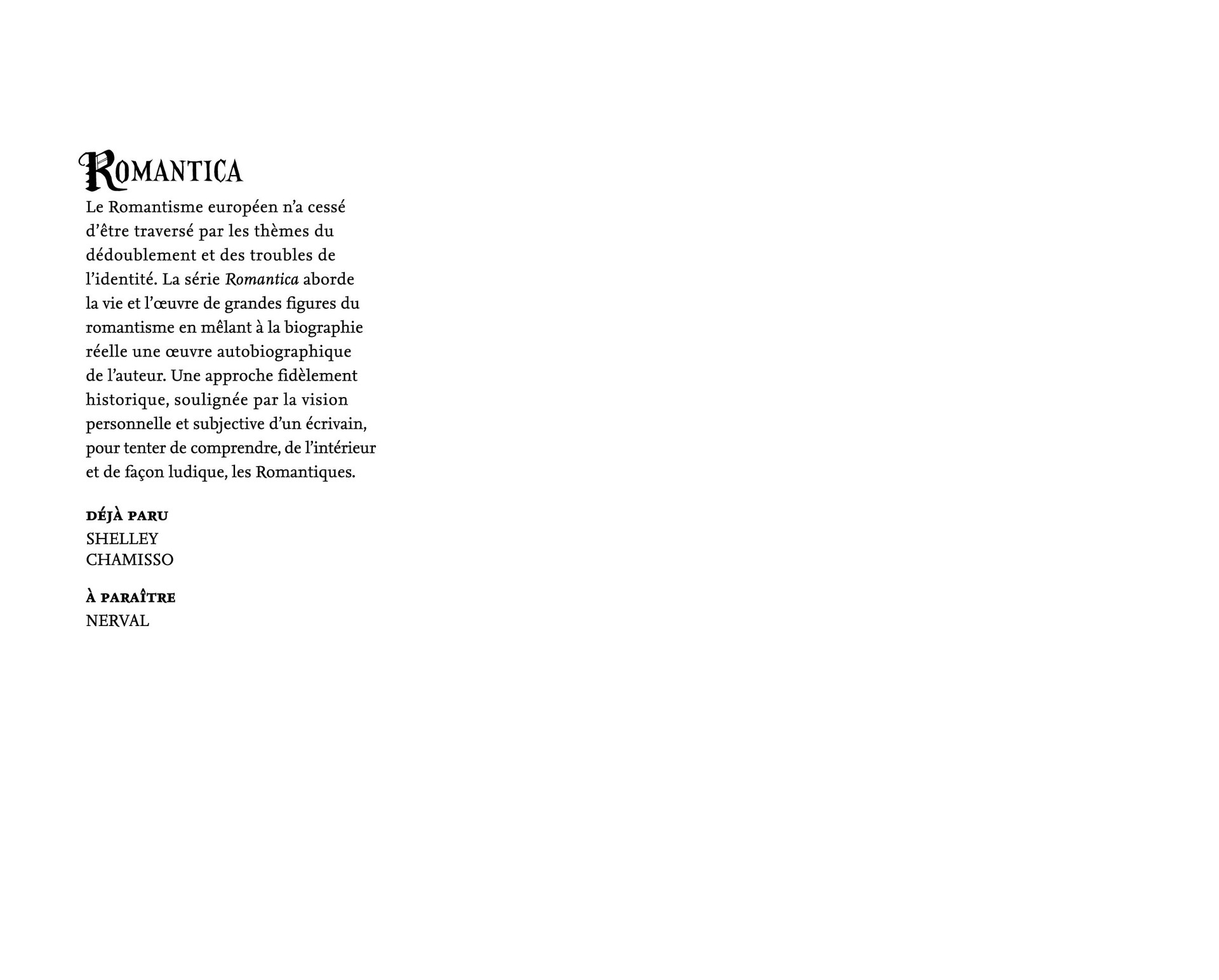 8Shelley ou la vie amoureuse de Frankenstein est réédité pour l’occasion de la sortie d’une nouvelle collection le Lombard, sous le doux nom de romantica. Il s’agira de traverser les époques, explorer des vies, voir des œuvres littéraires de grands romantiques. Petit pavé rigide présenté à l’italienne, marque-page en tissu, logo « R » de romantica sur la tranche, on est sans aucun doute dans ...