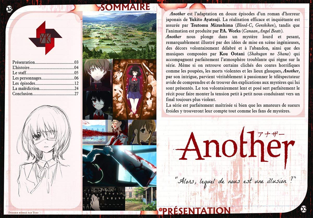 Fraîchement arrivé dans sa nouvelle école, dans une petite ville de province qu'il avait quitté quelques années auparavant, Koichi Sasakibara pressent rapidement que sa classe cache un secret terrible et inavouable. Il fait la connaissance d'une fille étrange, à laquelle aucun autre élève ne semble parler ou prêter attention, et les morts commencent à s'accumuler…