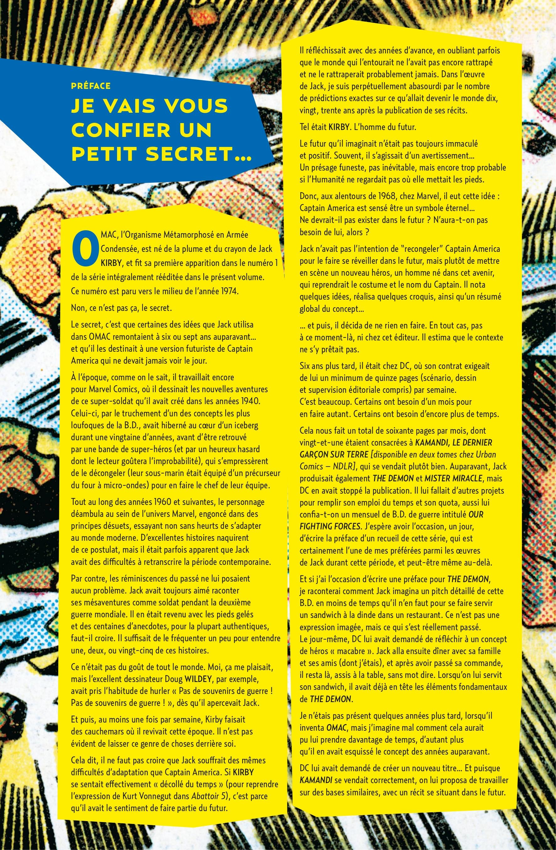 Petit employé de bureau sans importance, Otto Ordinaire devient le champion de l’Agence Globale pour la Paix lorsqu’il est modifié en O.M.A.C. : ORGANISME MÉTAMORPHOSÉ en ARMÉE CONDENSÉE, guerrier redoutable et dernier espoir d’un futur déshumanisé.