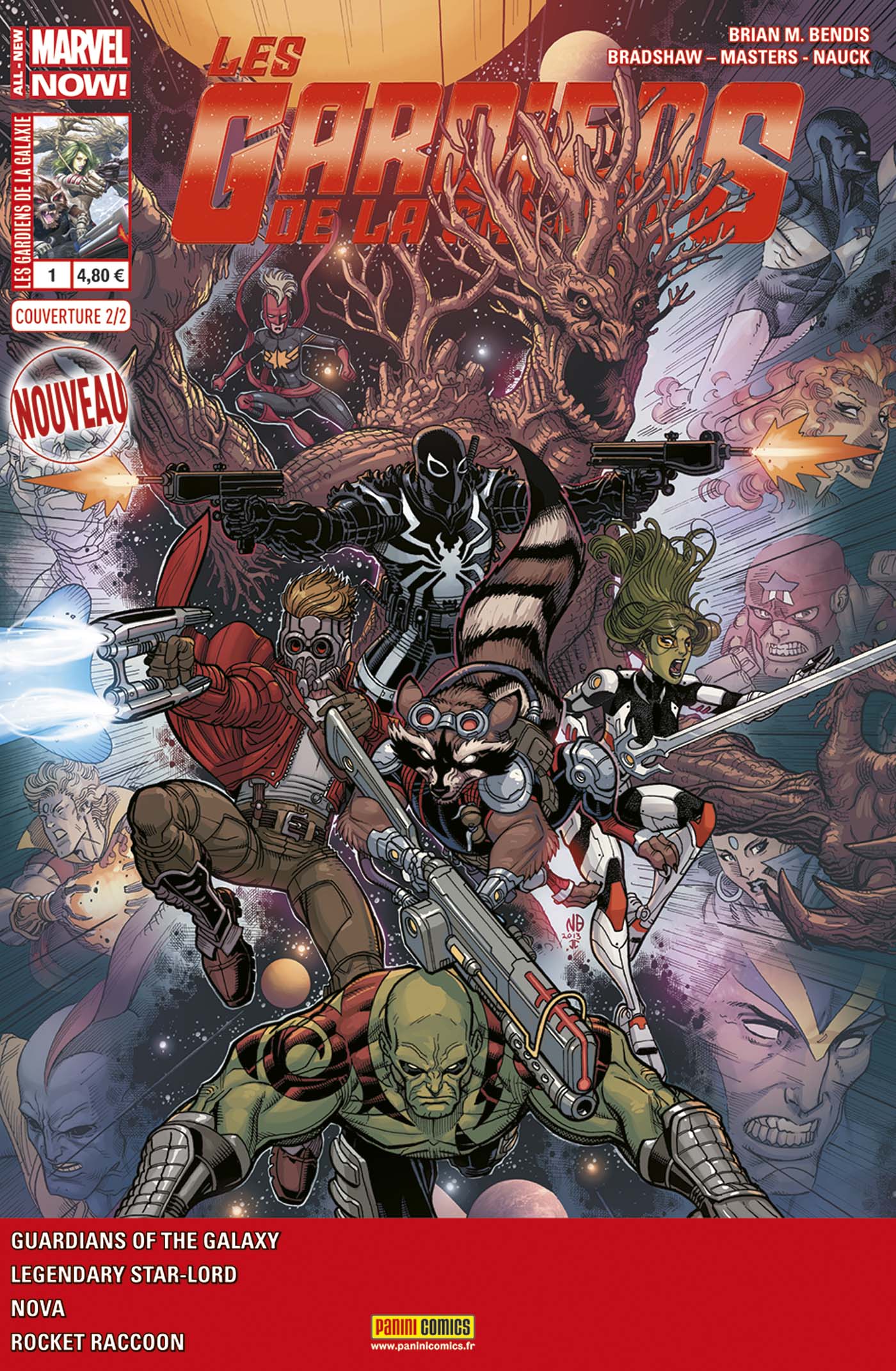 Nouveau mensuel dédié aux plus grands héros de l'univers : Les Gardiens de la Galaxie ! L'équipe se lance dans des aventures inédites signées Bendis/Bradshaw et accueille deux membres supplémentaires : l'agent Venom et Captain Marvel. Plus, début des séries Legendary Star-Lord de Humphries/Medina et Rocket Raccoon de Skottie Young. Et retour de Nova par Duggan et Medina. Un numéro collector agrémenté d’une couverture d’Alex Ross avec effet métallisé.