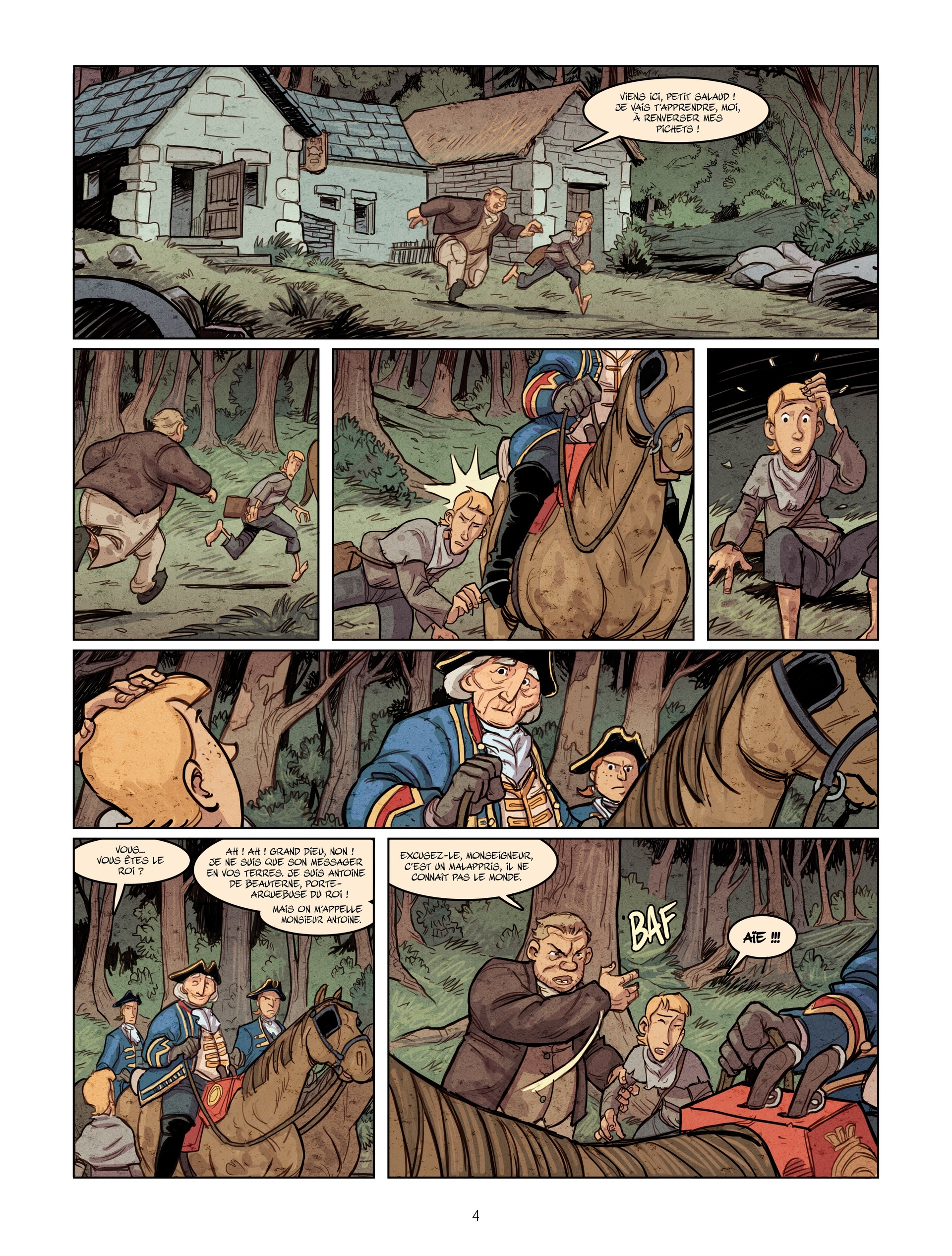 En 1765. Antoine de Beauterne, porte arquebusier du roi, arrive sur les terres de la célèbre bête. Il va être confronté à l’indicible. Cadavres à moitié dévorés, chasseurs reconvertis en bandits de grand chemin… Un allié inattendu va pourtant changer le cours des choses : Barthélémy, 11 ans, habile à la fronde, accepte de devenir son palefrenier, malgré l’exécution par ordre royal de son père protestant.