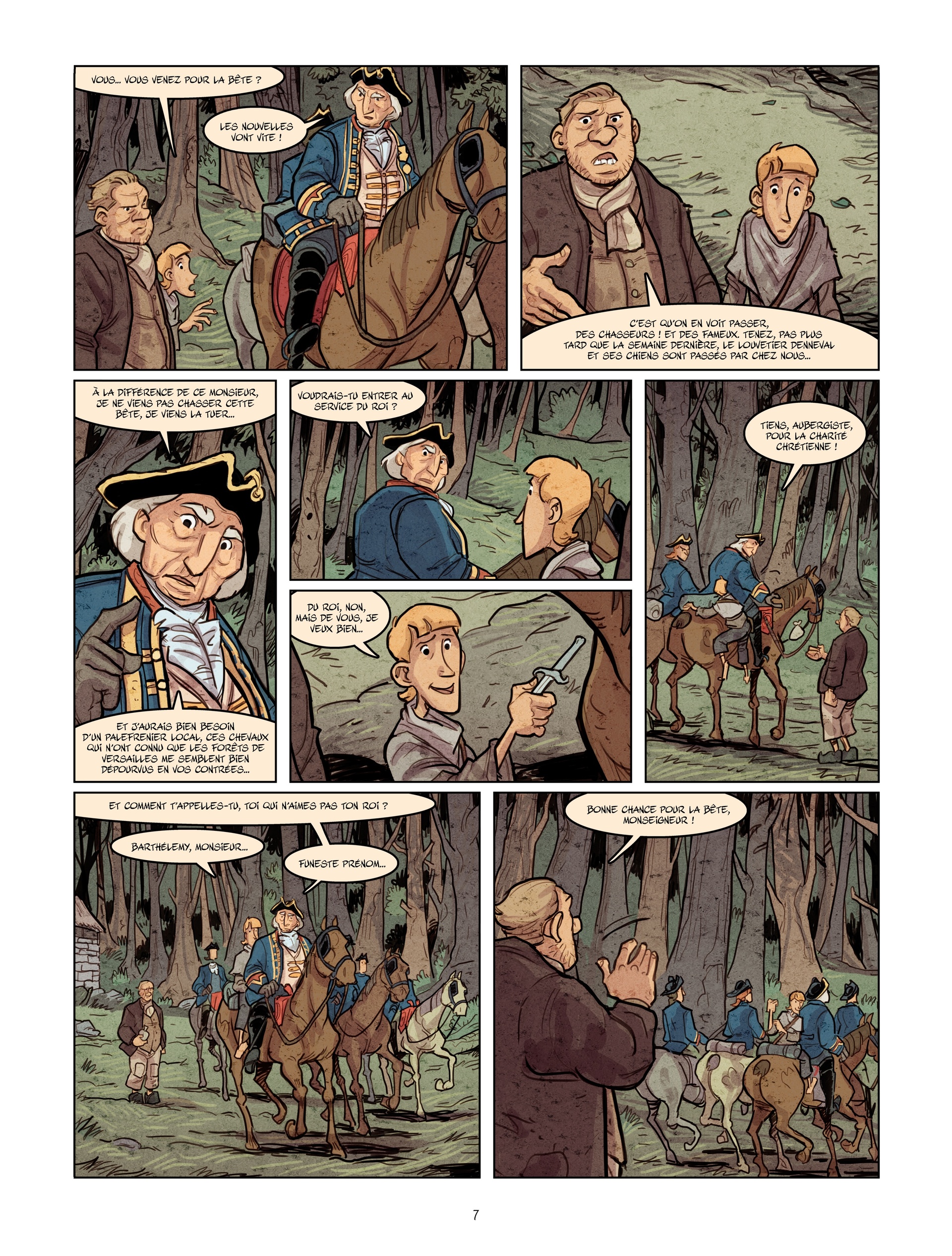 7Superbe histoire que voilà, humaine, humaniste même. Au-delà de revisiter la quête de la bête du Gévaudan, les auteurs présentent l’époque, entre inégalités de naissance, de classe et d’instruction et guerre religieuse fratricide. Un jeune garçon issu d’une famille protestante détruite sur ordre du Roi, qui porte un prénom prédestiné, Barthélémy, croise le chemin d’un homme âgé et sage, nommé pa...