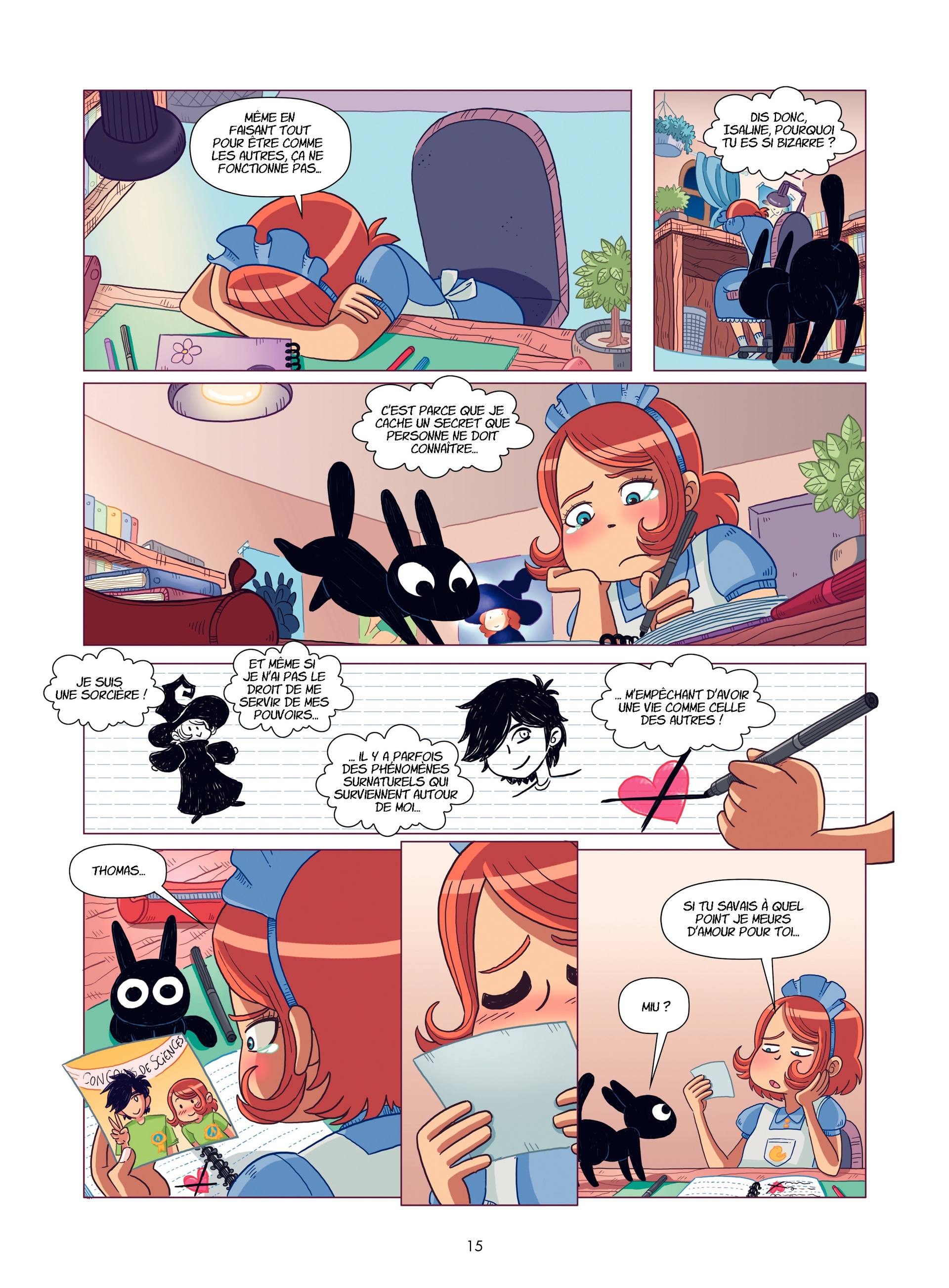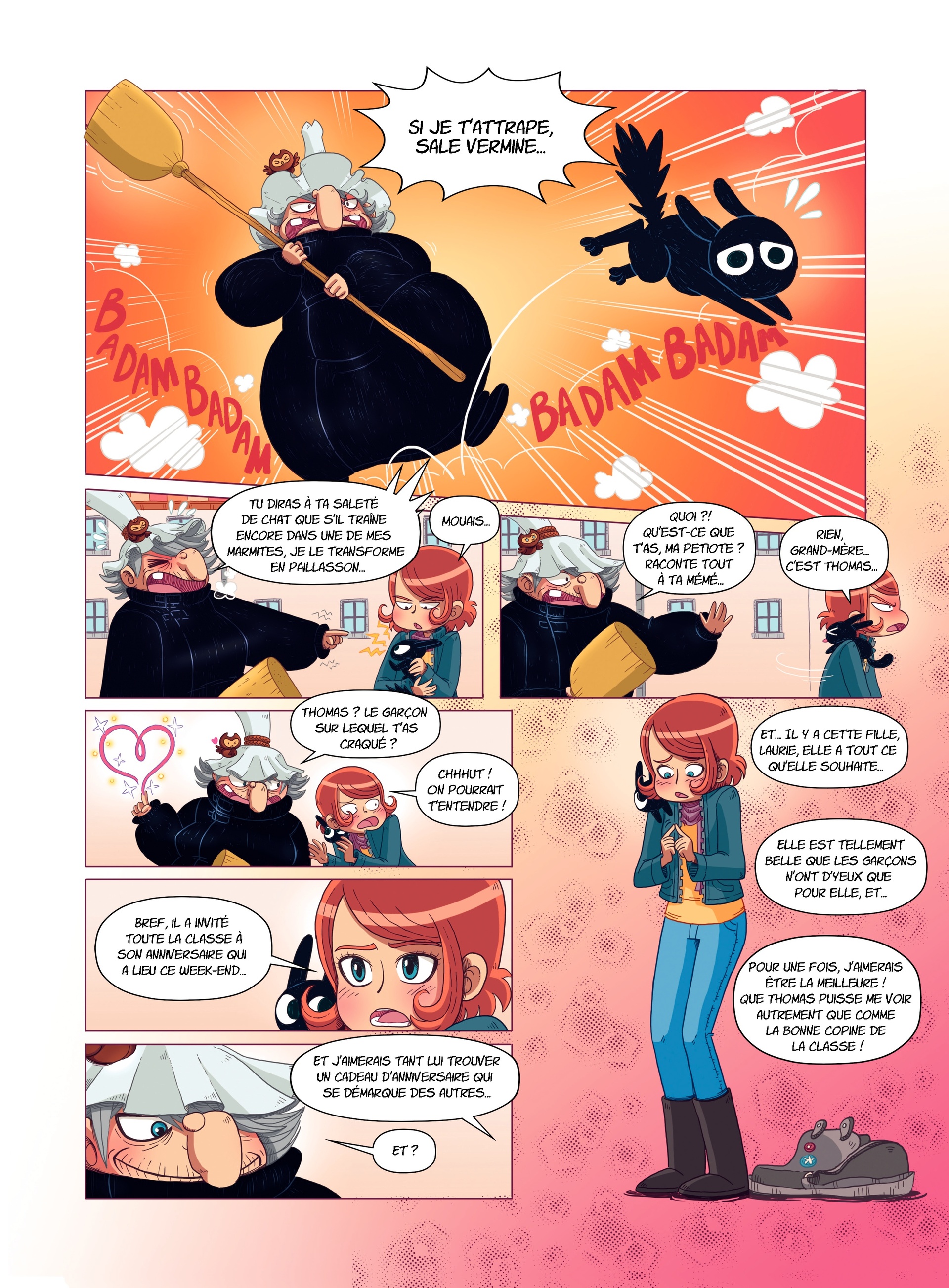 Lorsque celui-ci l’invite enfin à son anniversaire, cette peste de Laurie y est malheureusement conviée elle aussi. La concurrence va être rude ! Isaline demande alors de l’aide à sa grand-mère pour préparer un cadeau un peu spécial pour Thomas : un gâteau magique ! En effet, la vieille dame au caractère bien trempé est en réalité une sorcière ! Avec elle, Isaline réalise enfin sa première recette magique, mais catastrophe ! Il a dû y avoir une erreur quelque part…