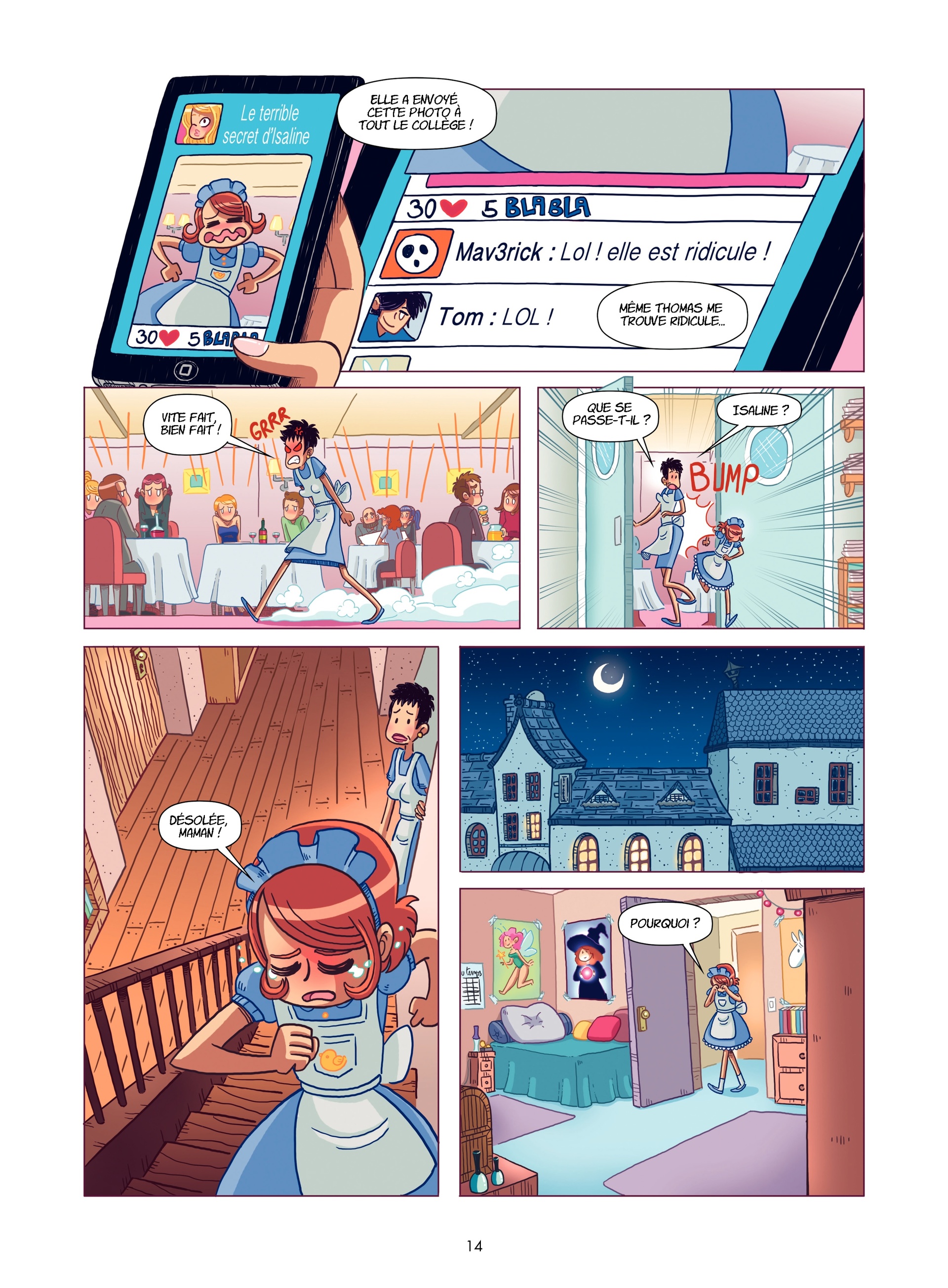Isaline est une jeune fille timide qui aide sa mère au restaurant le soir. Elle est secrètement amoureuse de Thomas, le plus beau garçon du collège.