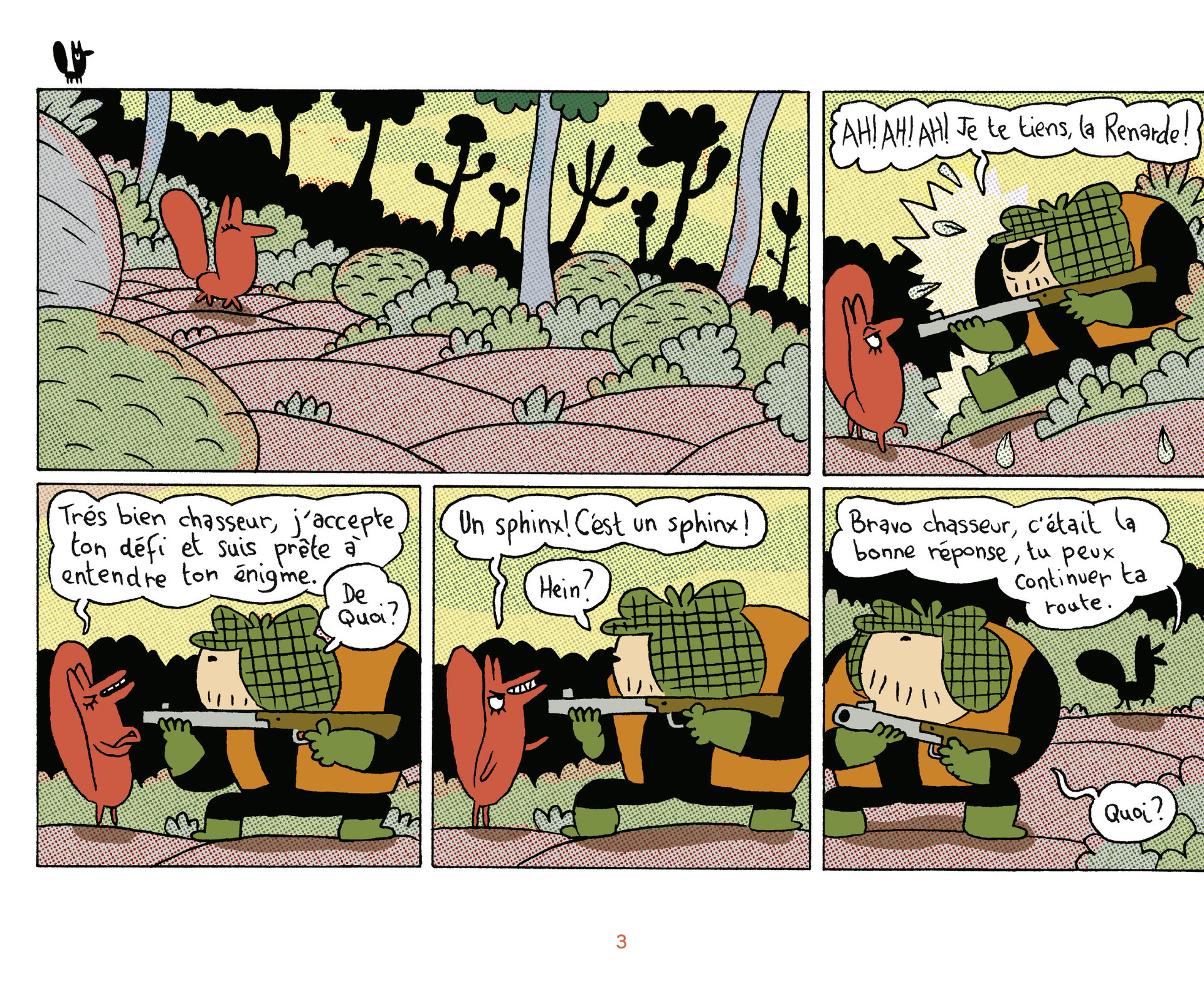 5Cette renarde rusée et manipulatrice a d’illustres ancêtres : le grand Renart bien sûr (du roman du même nom), l’opéra « la petite renarde rusée » de Janacek, « le roman de la renarde » d’Aquilino Ribeiro. Celle de la BD me semble une proche cousine de la dernière évoquée qui est une grande manipulatrice. Il y a un côté absurde plutôt sympathique dans cette BD avec ses gags à répétition avec l...