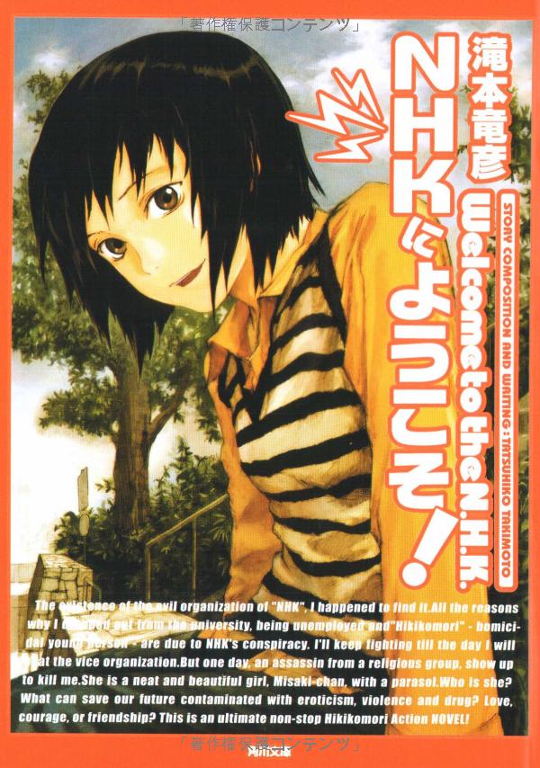 Twenty-two-year-old Satou, a college dropout and aficionado of anime porn, knows a little secret--or at least he thinks he does! Believe it or not, he has stumbled upon an incredible conspiracy created by the Japanese Broadcasting Company, N.H.K. But despite fighting the good fight, Satou has become an unemployed hikikomori--a shut-in who has withdrawn from the world....