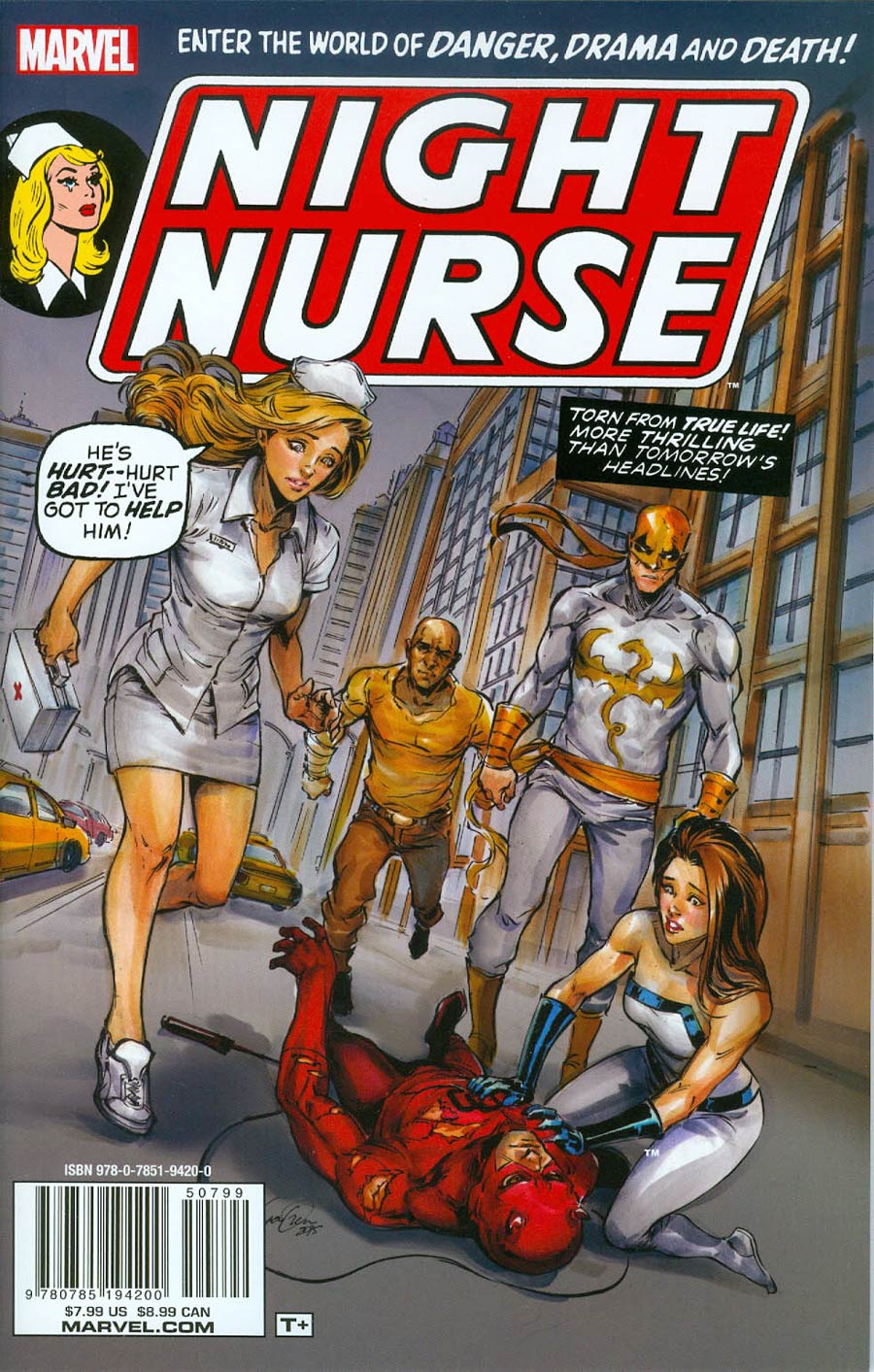 Marvel's 1970s cult-classic miniseries is collected in one super-sized one-shot! Linda Carter, Georgia Jenkins and Christine Palmer are all studying to become nurses. But what will happen when Linda must choose between love and career? Can Georgia stop her brother from holding the hospital hostage? As the nurses care for a mysterious hit-and-run victim, Christine realizes that her new boyfriend hides a terrible secret! When a mob war spills over into the hospital, Linda must act fast to save lives! Will Christine survive learning the secret of Sea-Cliff Manor? And when Daredevil is fatally shot, the Night Nurse must step out of the shadows and return to action! Guest-starring Black Widow, Elektra, Iron Fist, Luke Cage and Jessica Jones!