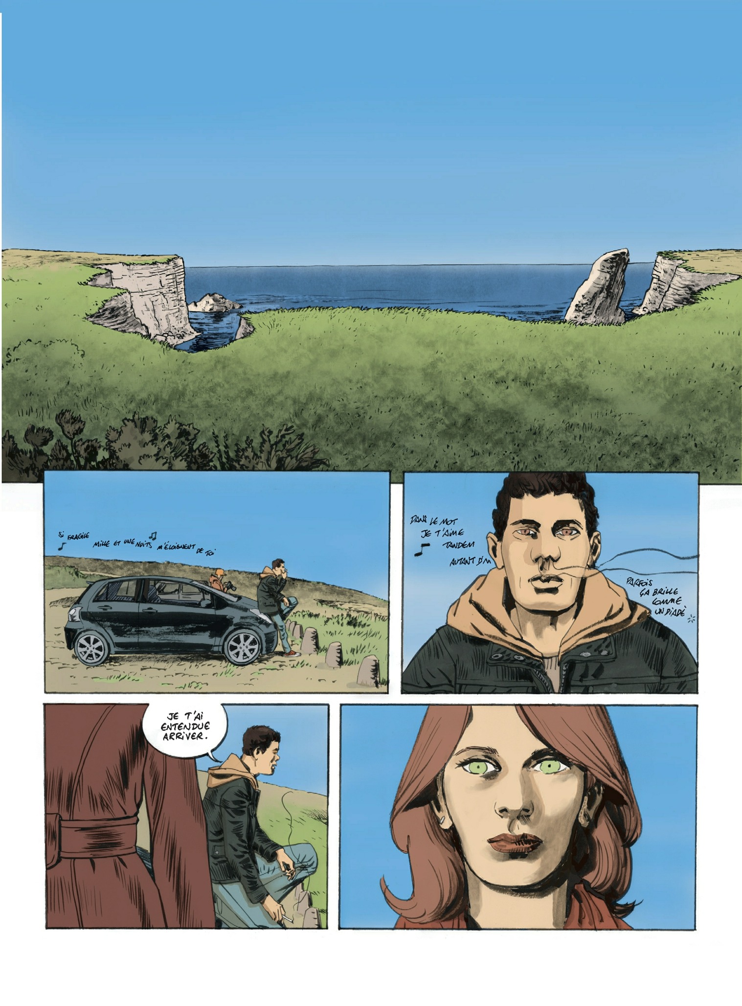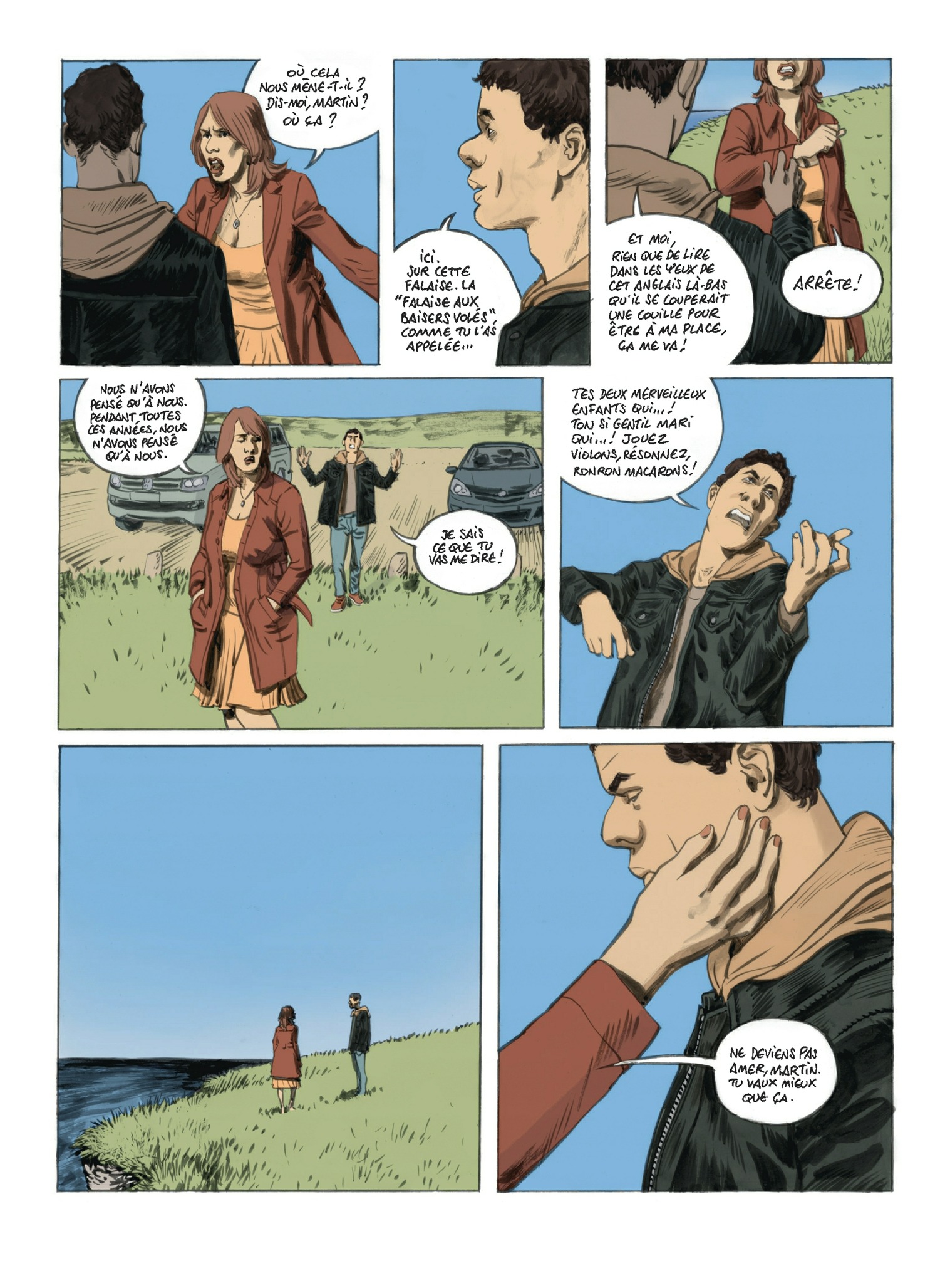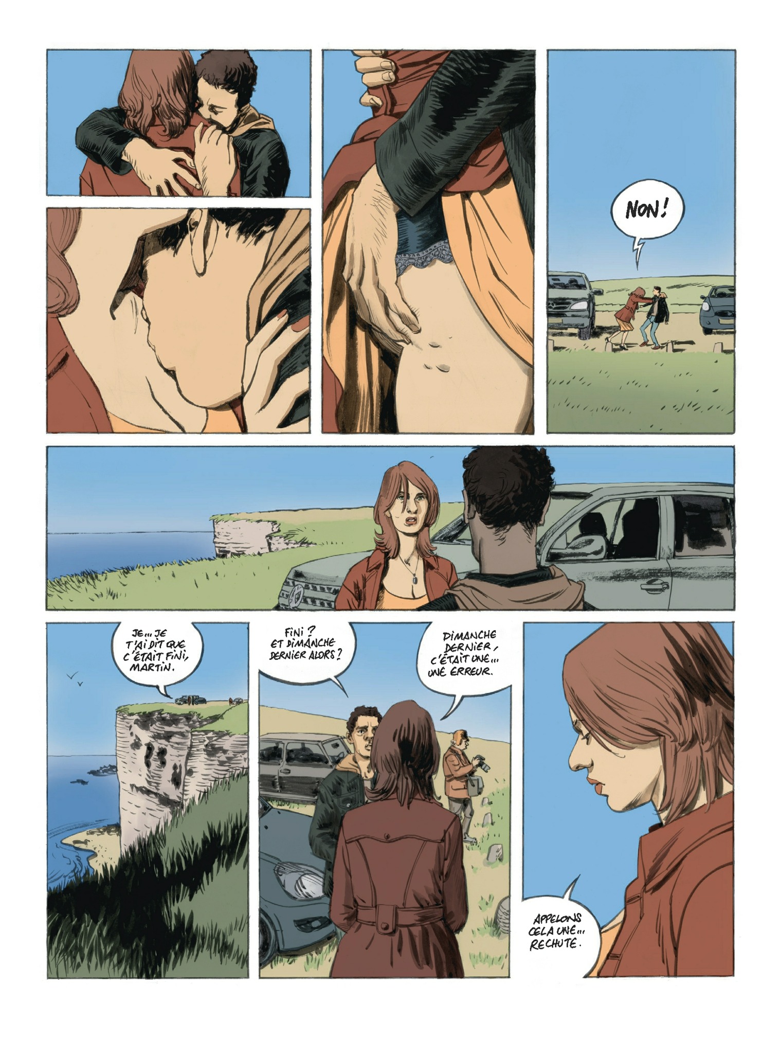 Une falaise au bout du chemin des douaniers, quelque part dans le Pas-de-Calais. Le printemps, impatient, se donne parfois des airs d’été. Un homme attend une femme, sa voiture à l’arrêt. Quand, enfin, elle arrive, c’est pour lui annoncer que leur relation est terminée. Terminée. Que la dernière fois, elle n’aurait pas dû. Que les enfants… que son mari…Que… La culpabilité et les regrets qui mettent fin à toute relation adultère. Elle repart. Il reste là. Sur cette falaise. « La falaise aux baisers volés », comme il l’appelle. Lui, c’est Martin. La trentaine. Il travaille dans une compagnie maritime. Elle, c’est Virginie. Bientôt quarante ans. Elle est vétérinaire. Ils sont frère et soeur. Et ils s’aiment. Tout a commencé alors que Virginie avait 18 ans et Martin 16. Un jeu d’adolescent curieux. Puis chacun d’eux a cherché à fuir cet amour interdit ? Elle, dans un mariage confortable. Lui, en acceptant des années durant un poste lointain, à Abu Dhabi. Mais, depuis son retour voici quatre ans, leur relation a repris. Plus forte, plus passionnelle encore… Aujourd’hui, elle veut tout arrêter, elle parle de leur relation comme d’une drogue qui les détruit peu à peu… Après le succès de librairie du Beau Voyage, le duo Springer-Zidrou récidive avec un récit à nul autre pareil, fort, sensuel, magnifique !