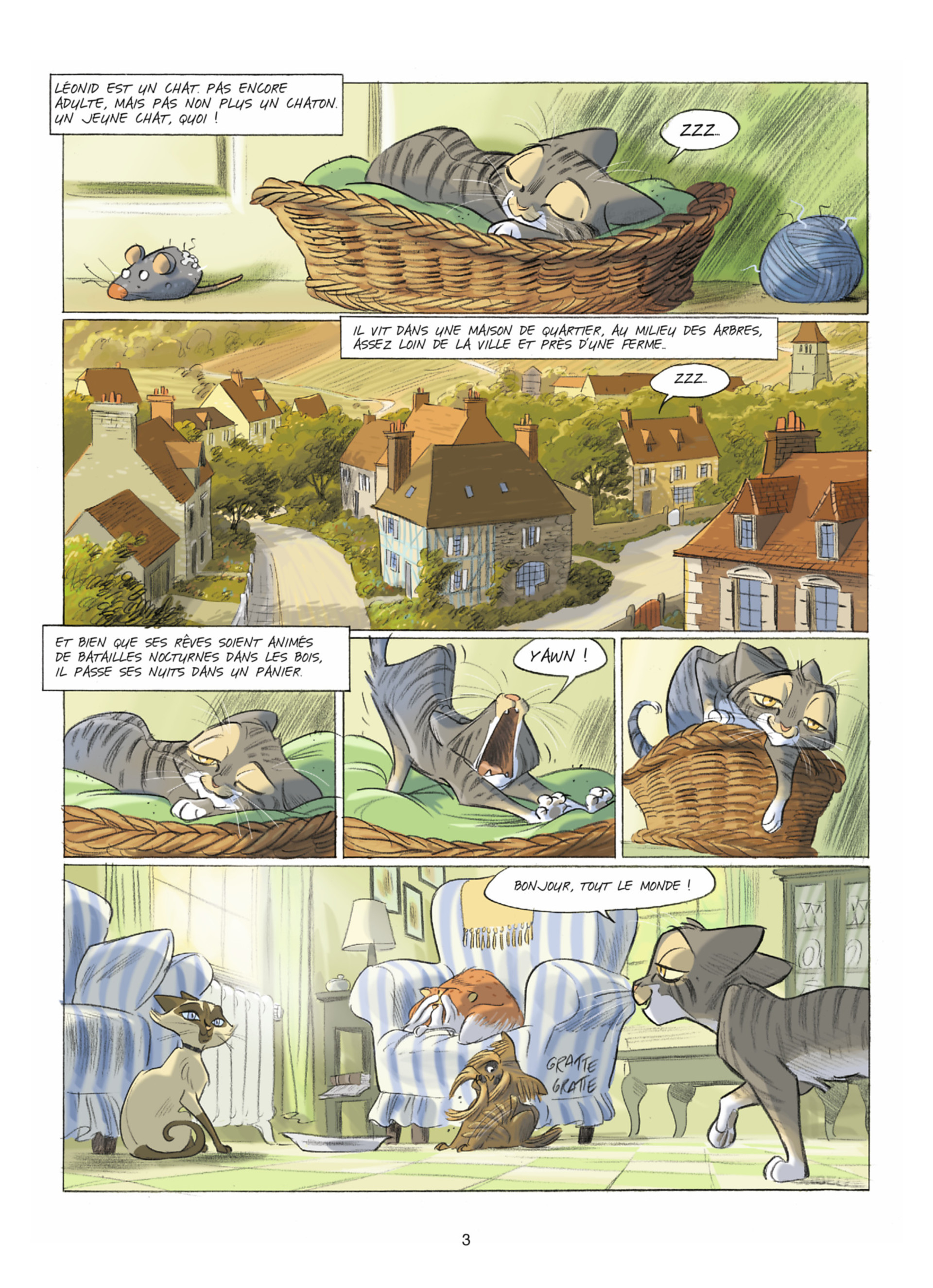Léonid vit à la campagne où des champs se mêlent aux maisons du quartier, où les chats sauvages et de ferme côtoient les chats d’intérieur. Un lieu de paix néanmoins menacé…