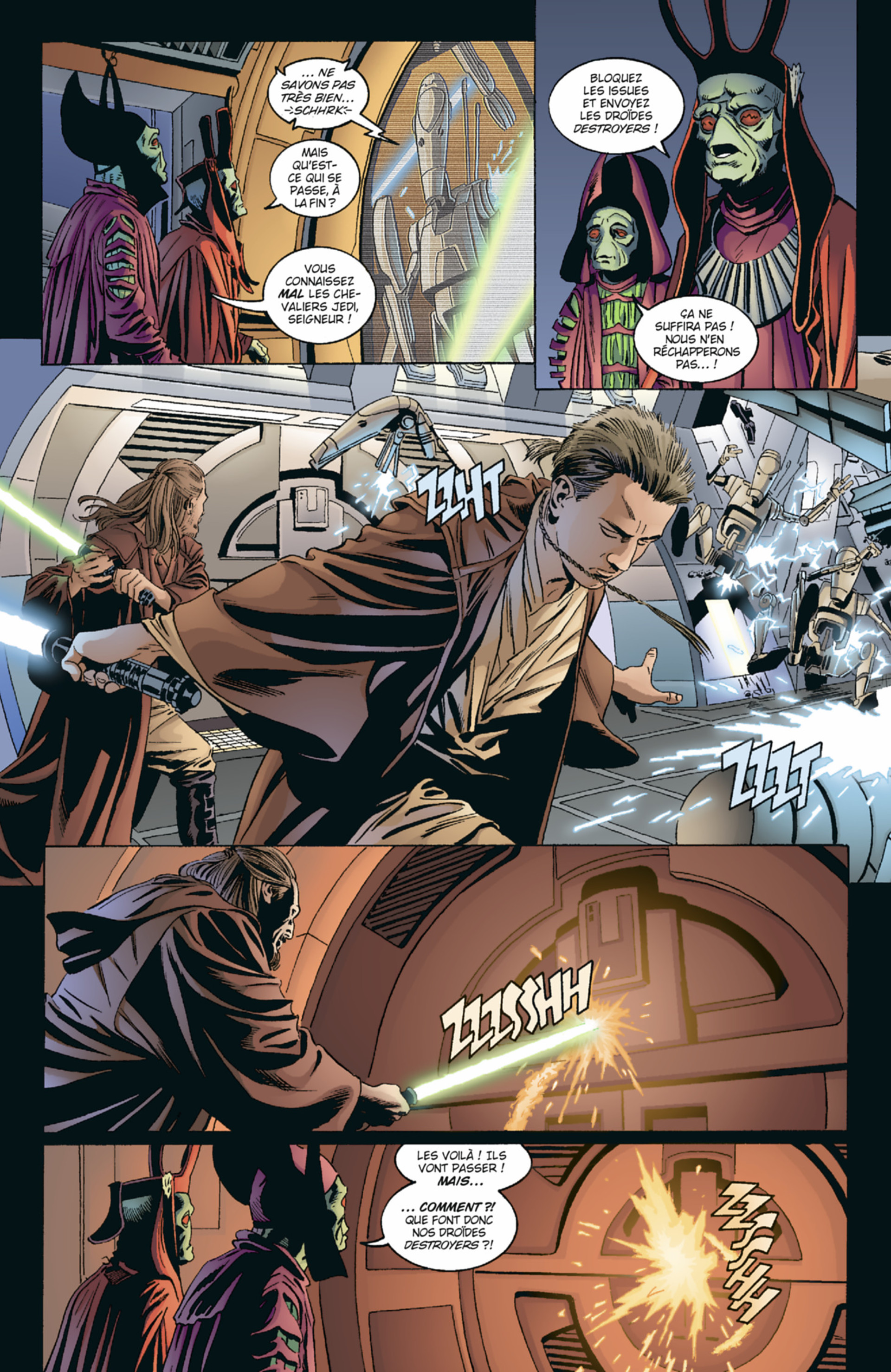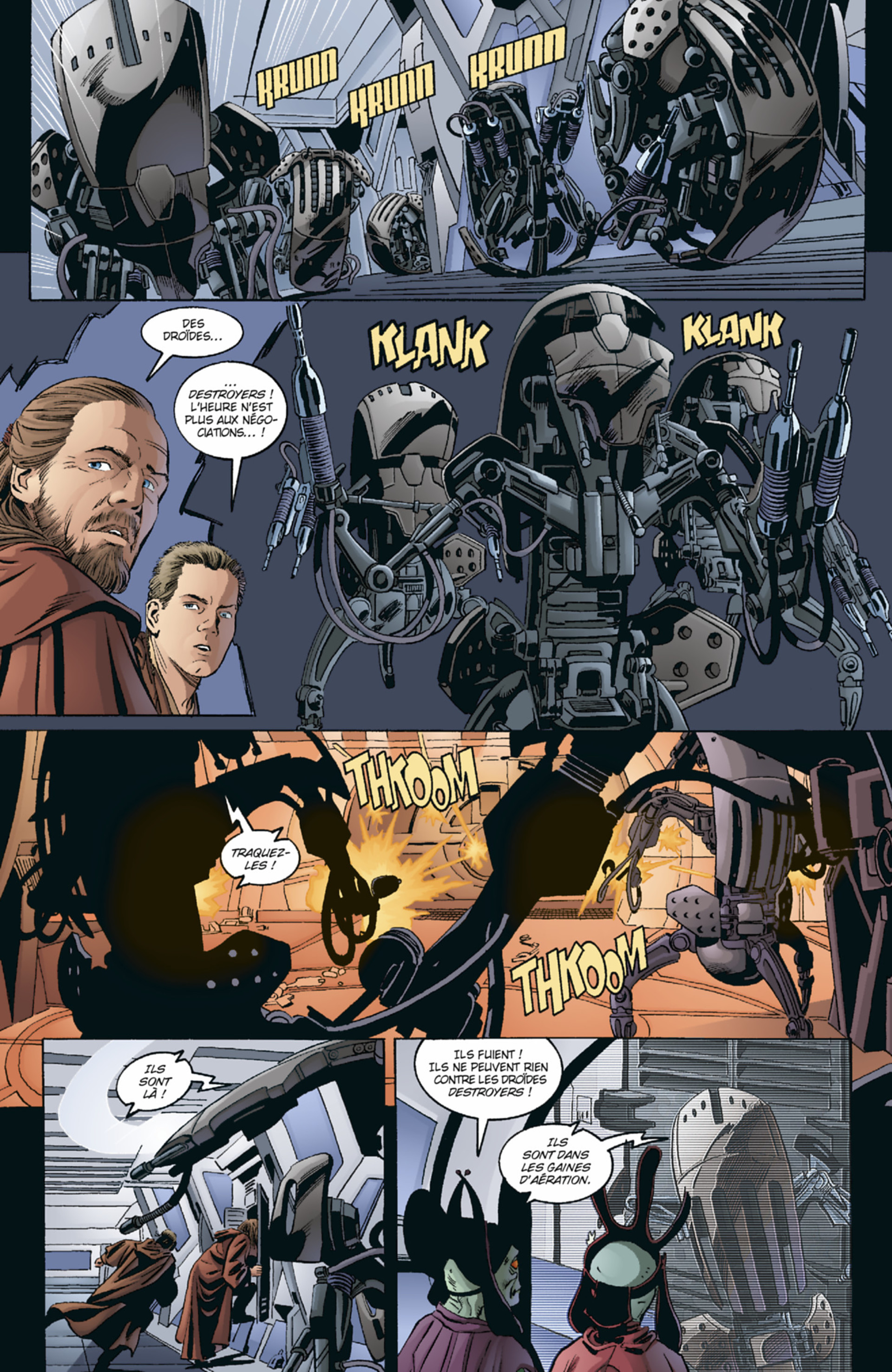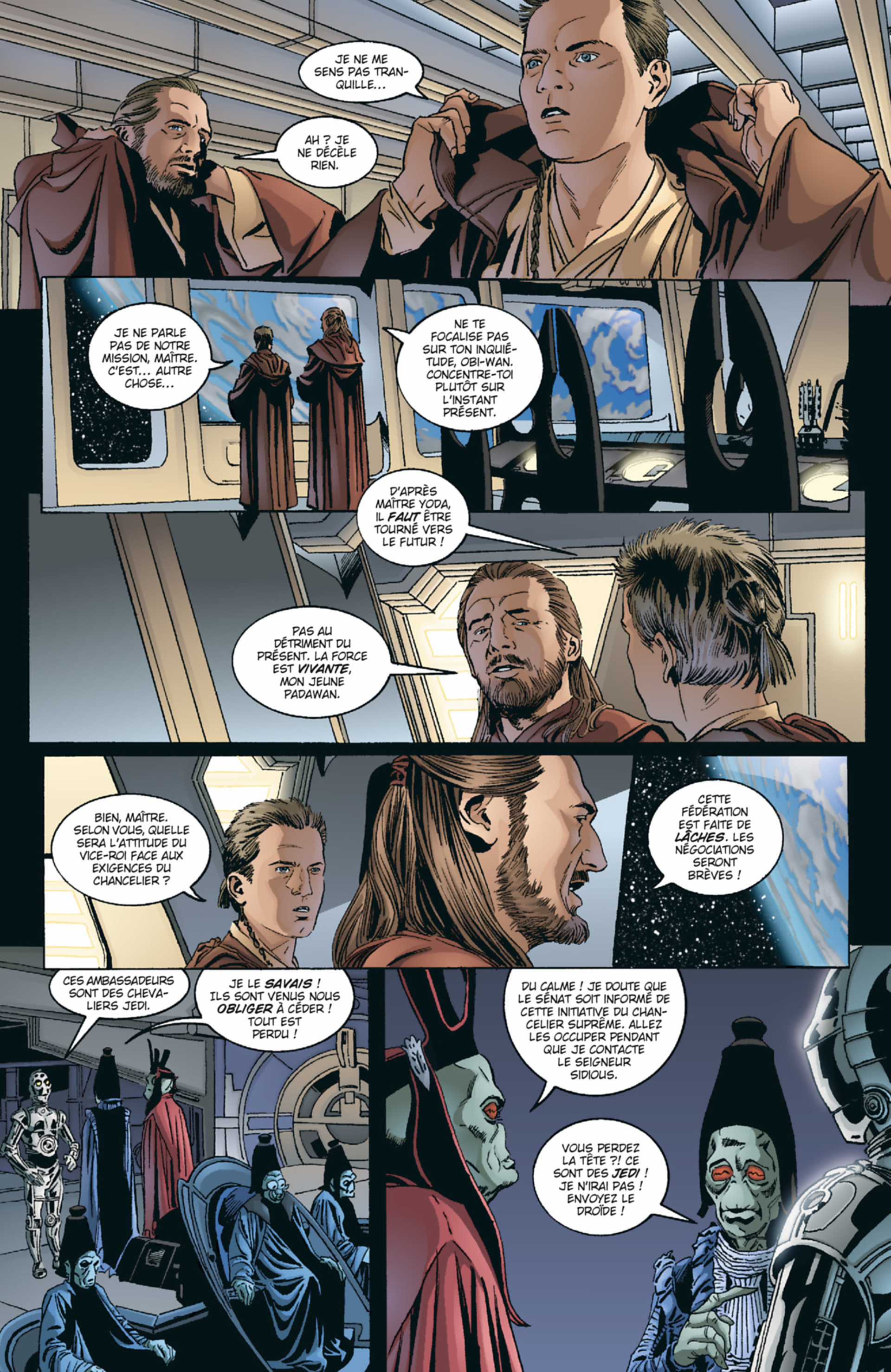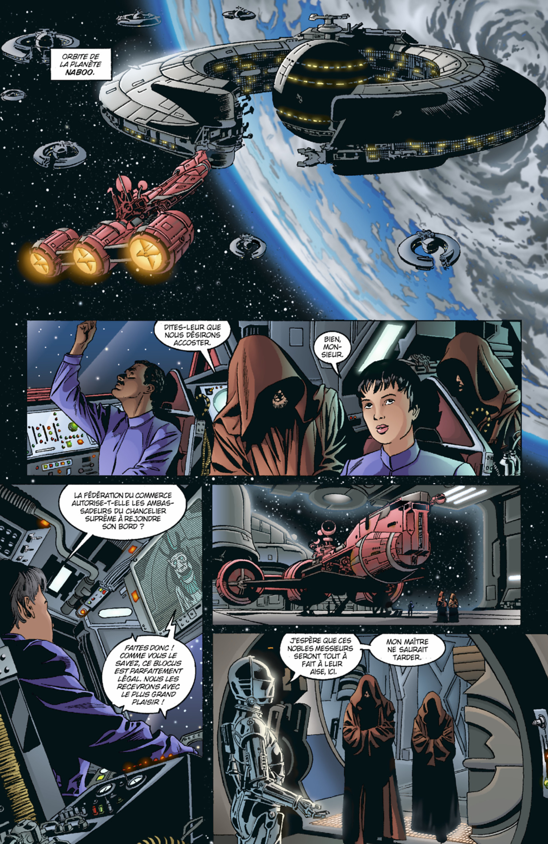 La Galaxie est en émoi, et la République en pleine confusion. La Fédération du Commerce – aux ordres des Séparatistes – a mis sous embargo la petite planète Naboo. Pendant que le Sénat de la République discute sans fin de la situation, le Chancelier Suprême a secrètement dépêché deux Jedi, garants de la paix et de la justice galactiques, pour tenter de mettre un terme au conflit…