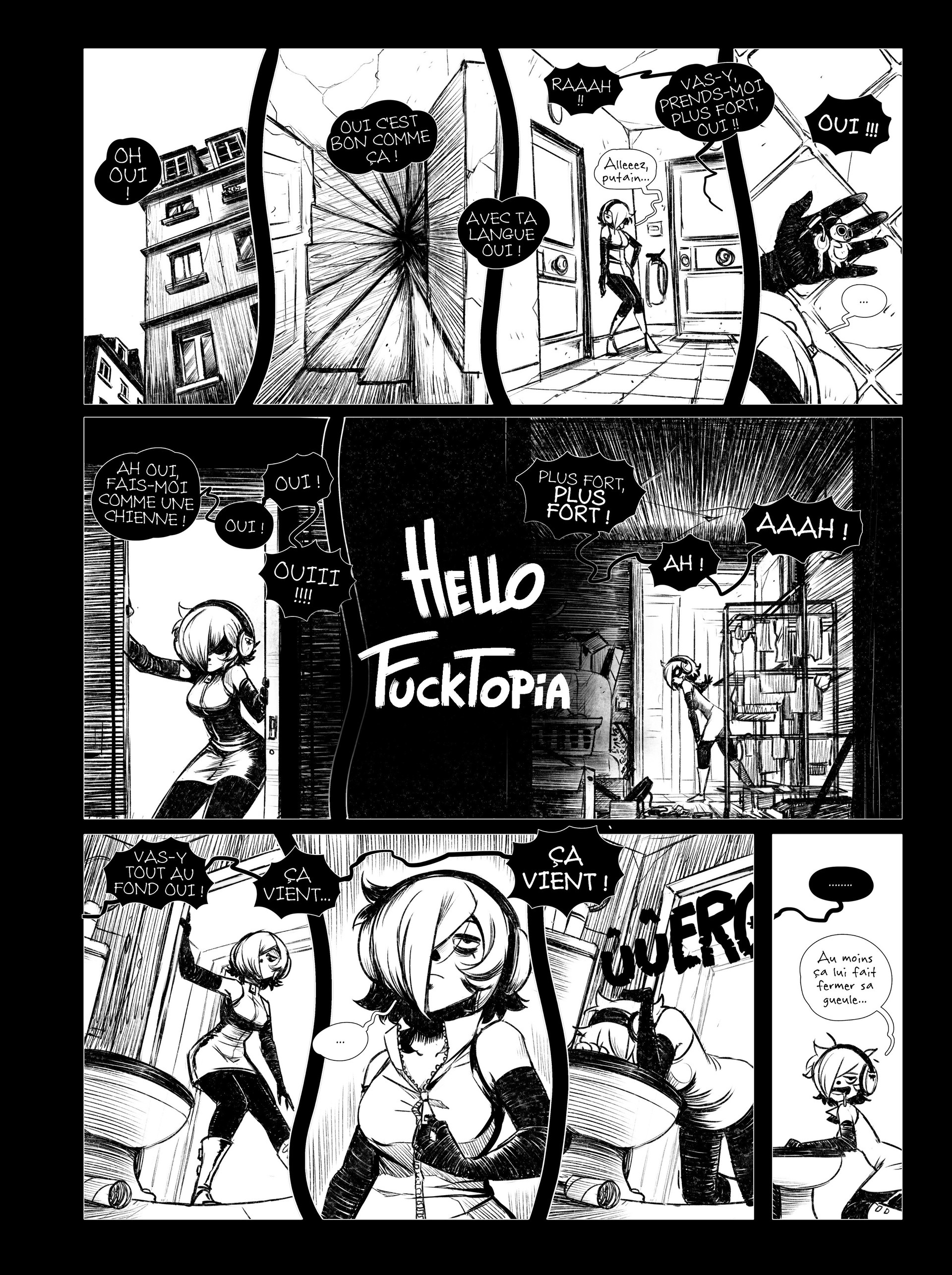 Cette réédition de collection de Hello Fucktopia à la couverture argentée, en grand format et en noir et blanc, permet d'apprécier pleinement les encrages de l'auteur et souligne un nouvel aspect de l'univers sombre et troublé de Mali.