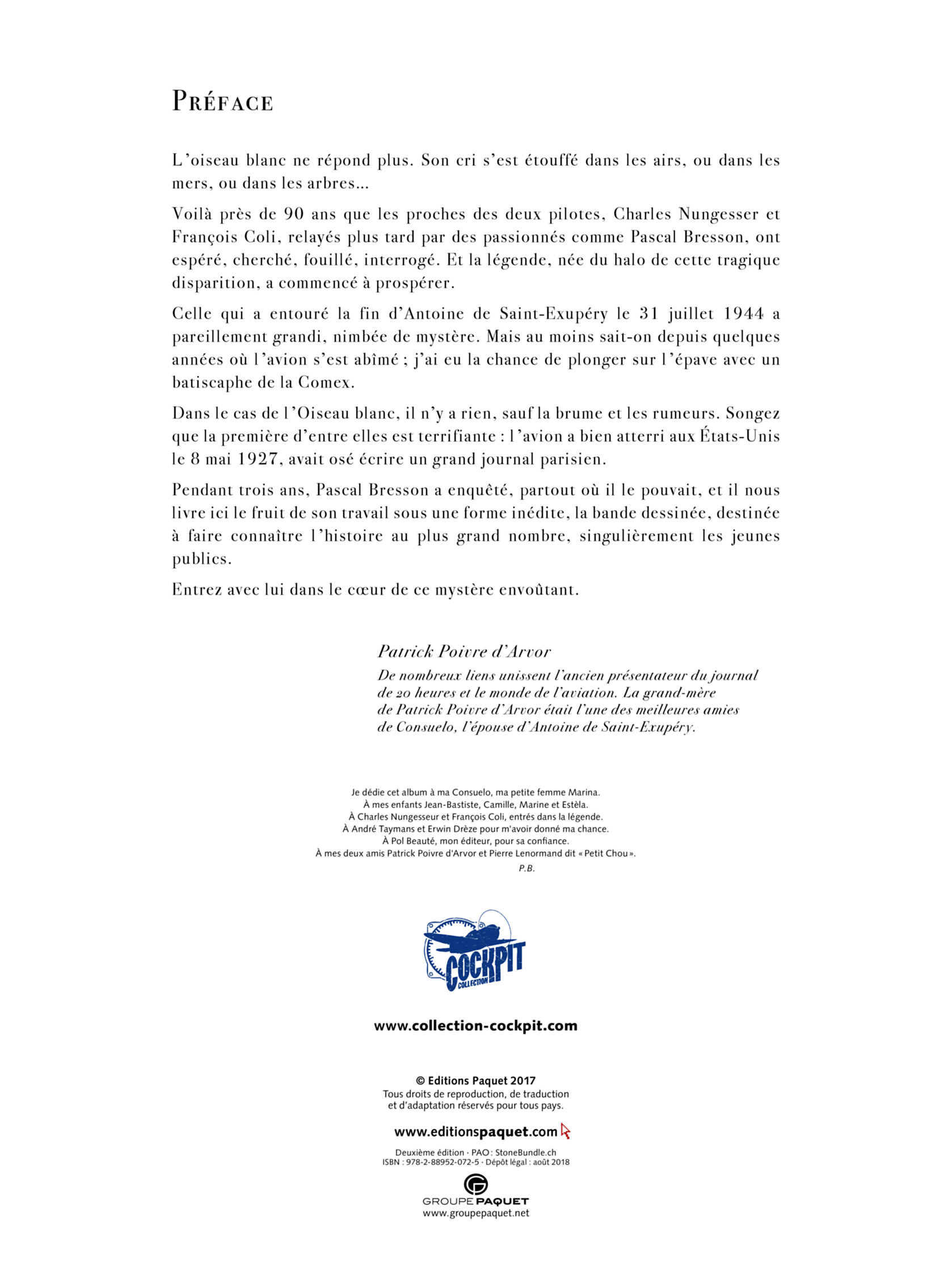 Longtemps, les experts ont cru que « L'OISEAU BLANC » s'était abîmé en mer, dans la Manche, puis d'autres ont estimé leur crash probable dans le Maine ou bien à Terre Neuve... Cependant, aucun n'a pu démontrer ces hypothèses. Cette bande dessinée, pertinente, une enquête digne de Sherlock Holmes, apporte de nouveaux éléments, de nouveaux témoignages...