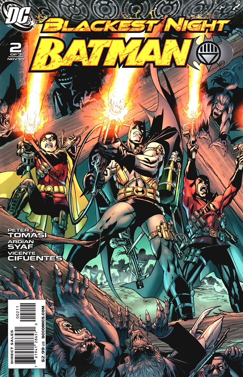The Dark Knight continues his journey into BLACKEST NIGHT! Will the new Batman join his predecessor in the grave? Will Red Robin's reunion with his father be bitter and bloody? Can anyone escape the horror of the Black Lanterns? Find out in this new installment of the 3-issue miniseries from writer Peter J. Tomasi (GREEN LANTERN CORPS, THE MIGHTY) and up-and-comer Ardian Syaf!