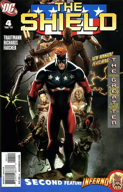 A new mission begins, taking The Shield on a Nazi hunt in the jungles of South America. But there are already complications and an international incident brewing when he encounters the Great Ten!Plus, Inferno has finally been cornered by the FBI. Has he run out of room to escape – or will he leap to the top of the Most Wanted list?