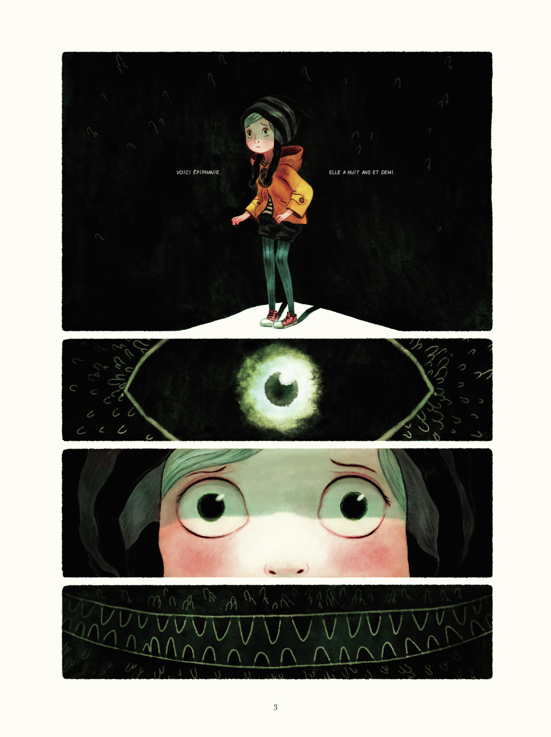 Une histoire savoureuse et pleine d’humour autour des peurs enfantines. Épiphanie Frayeur est une petite fille qui grandit en même temps – mais moins vite – que sa peur. Ses cheveux sont constamment dressés sur sa tête. Elle a peur de tout, tout le temps. Cette peur – une énorme masse noire qui prend différentes formes – la suit partout, attachée à ses pieds comme son ombre. - Aaahhh !!! Vous m’avez fait peur ! Qu’est-ce que c’est que ça ?