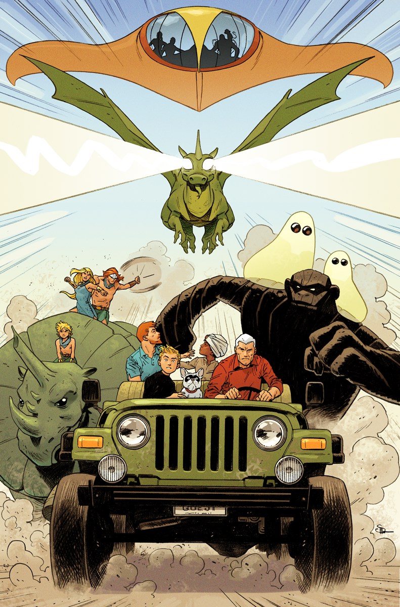 The future looks dark! In this issue, Omnikron, ravager of worlds, is loose in Los Angeles—and only the Impossibles stand in the creature’s way! Then, Mightor and Birdman take a very unfortunate shortcut that may never bring them back to Earth. Plus, Dr. Zin’s deeds come back to haunt him as he and Dr. Quest try to escape from F.E.A.R.’s underground base...is their last, best hope a bunch of kids and a robot without a brain?