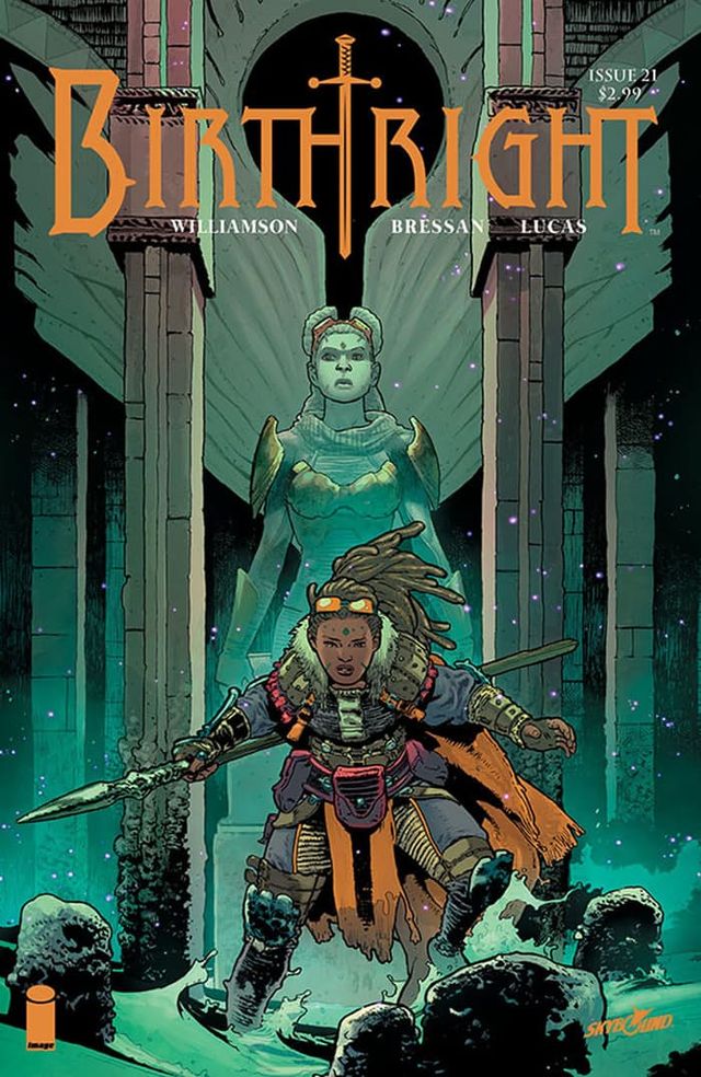 Born during a time of endless war, Rya will do anything to give her child a better future. For the first time, learn the winged warrior’s greatest secrets in this “Tale of Terrenos,” as we march toward BIRTHRIGHT #25.