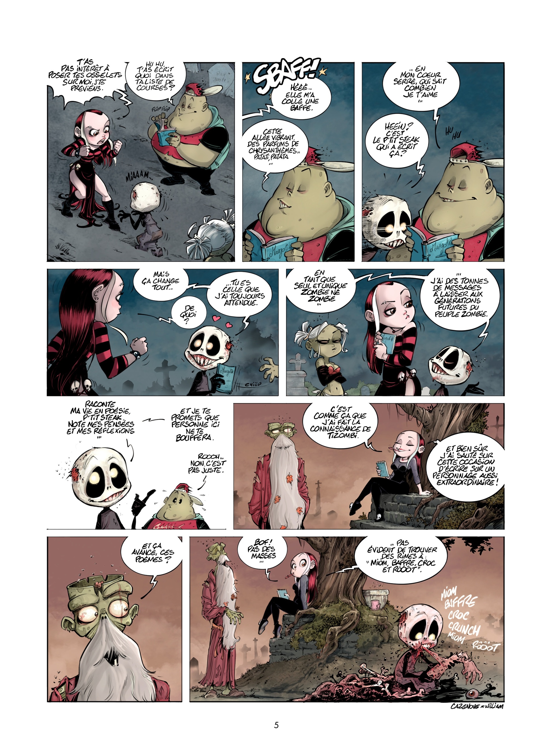 Même s’il est le plus mignon de tous, Tizombi n’en reste pas moins un zombie à l’appétit insatiable. Véritable trou sans fond, il dévore, avale, gobe et croque tout ce qui passe à portée de sa dentition acérée. Tout, sauf la jeune Margotik qui écrit un livre sur lui : elle est fascinée par celui qui reste le seul zombie à être né zombie !