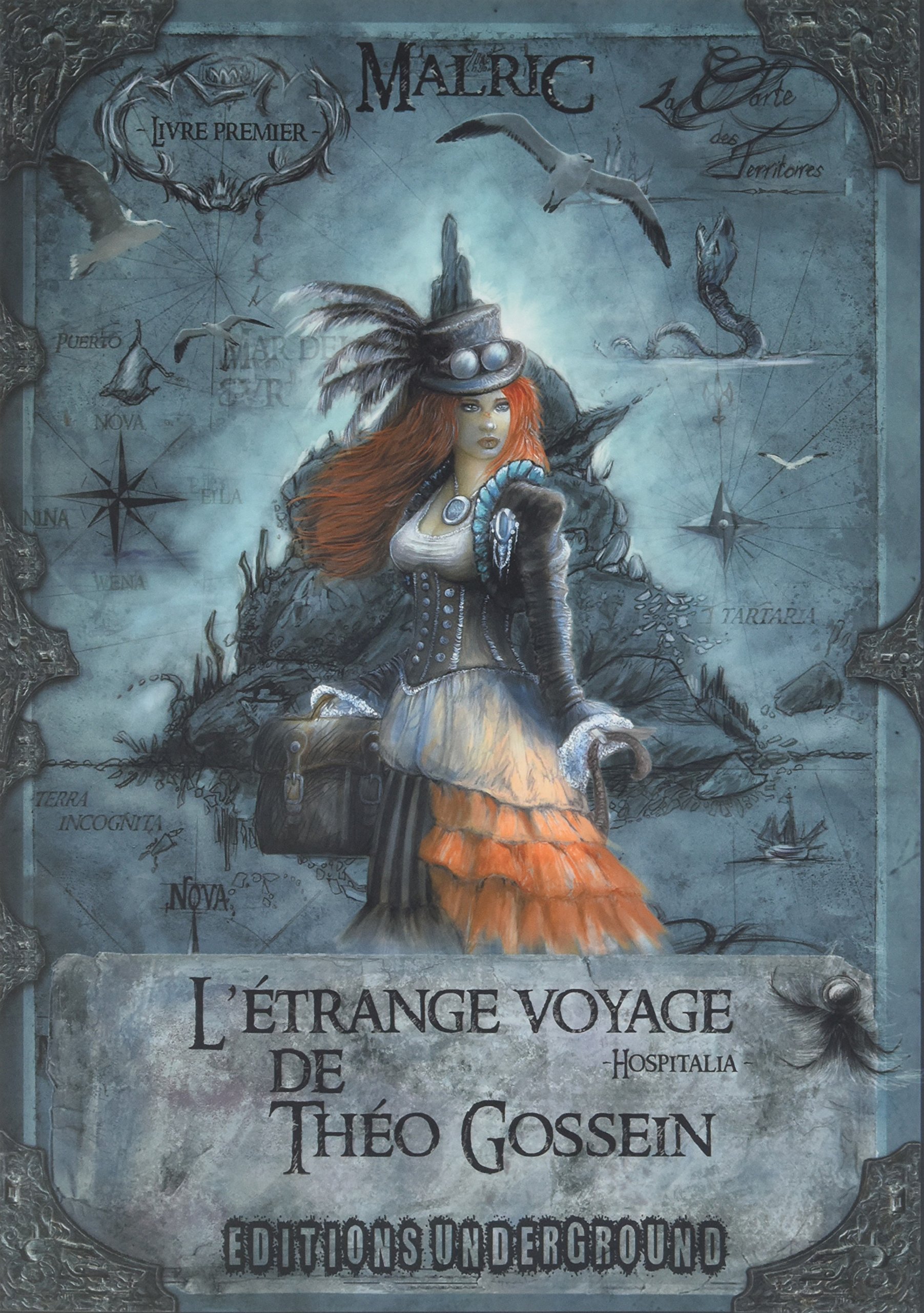 Théo Gossein est un artiste malade dont le traitement lui bloque toute créativité. Il vit reclus dans son atelier sans jamais voir personne ; il n'est plus capable de poser une seule couleur sur une toile. Son monde l'oppresse, le terrifie. Alors, comme dans un dernier sursaut salvateur, il décide d'arrêter ses pilules et de sortir de chez lui. C'est le début d'une aventure qui va le mener bien au-delà de son imagination. Dans ce premier tome, Théo nous livre son carnet de voyage : sa route vers Hospitalia. Et comme dit Théo « Quand les mouettes ont pied, il est temps de virer ».