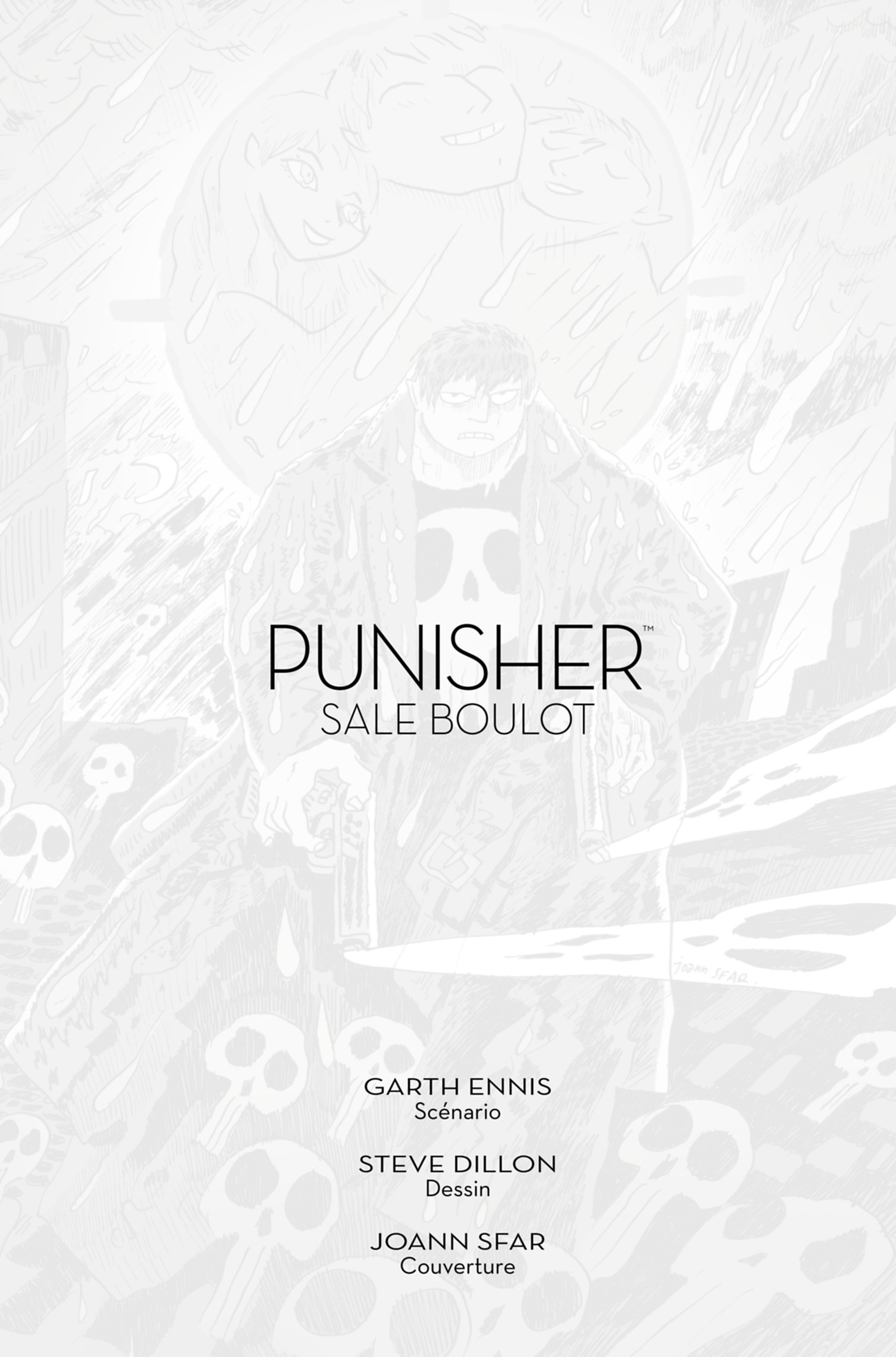 Frank Castle est un ancien marine, revenu au pays pour voir sa famille mourir devant ses yeux, assassinés par la pègre. Désormais, c'est lui qui fait les règles. Désormais, il est le Punisher. Un des récits fondateurs du vigilante par Garth Ennis et le regretté Steve Dillon.