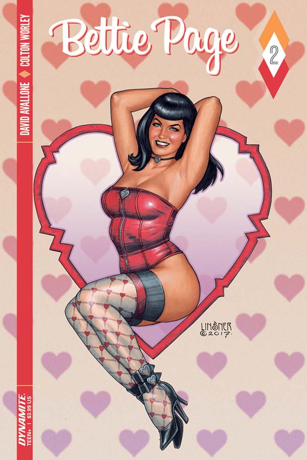 Bettie takes on Hollywood as the B-Movie Queen of the Space Commies! Bettie gets in over her head with the shadowy Sky Science cult! Bettie unleashes chaos at the Griffith Park Observatory! Writer David Avallone and artist Colton Worley are your tour guides through the thrilling second issue of The Secret Diary of Bettie Page!