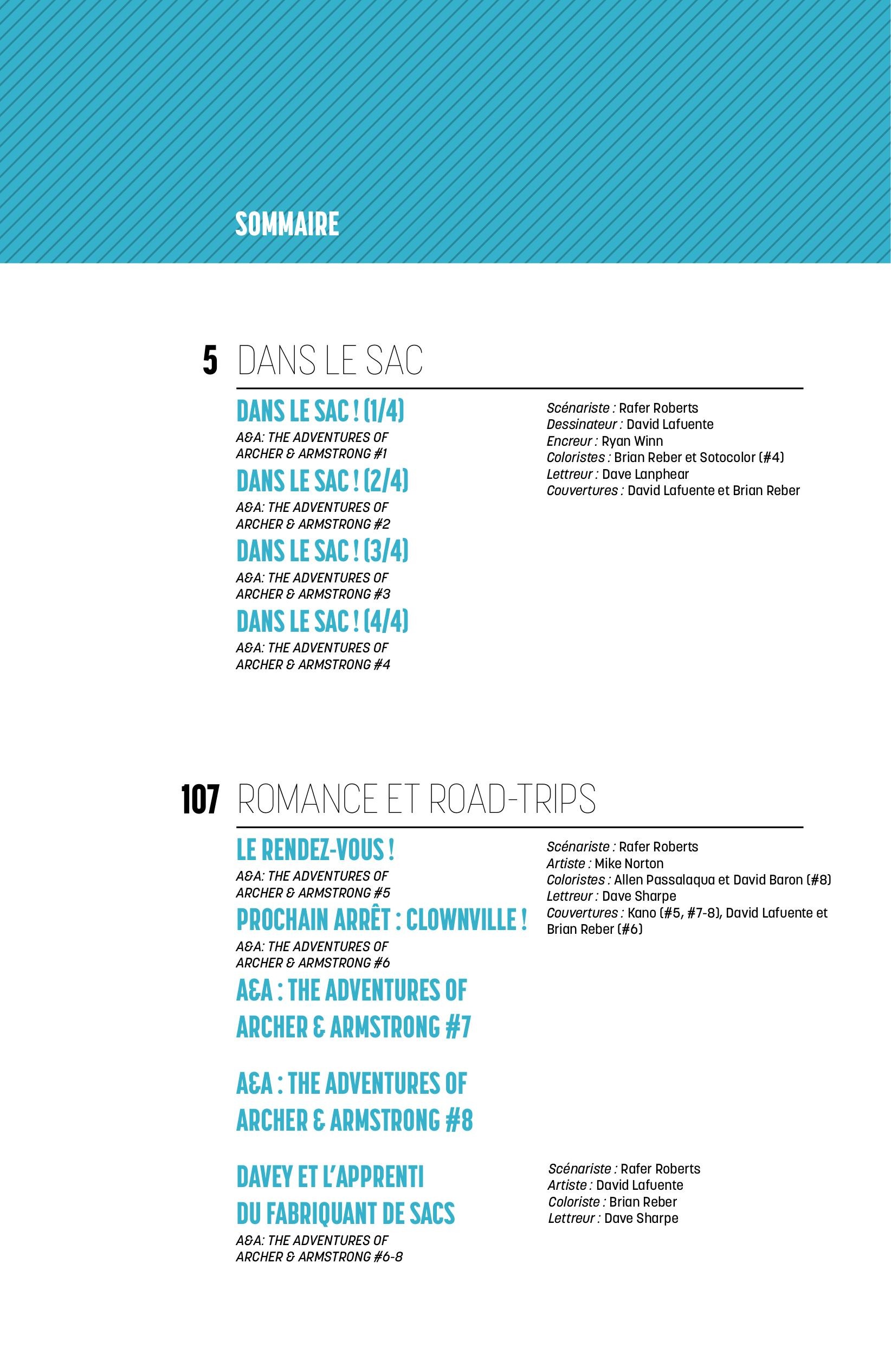 MAIS AUSSI : Davey le maquereau ! Un cirque de savants fous bolchéviques ! Le premier rendez-vous de Faith et Archer ! Le plan des Un Pour Cent pour dominer le monde ! Gub Gub, votre nouveau personnage favori ! Archer et Armstrong reviennent dans ce récit complet écrit par Rafer Roberts (Harbinger Renegades) et illustré par David Lafuente (Ultimate Spider-Man) et Mike Norton (Revival), lauréat d’un Eisner Award. L’occasion de découvrir ou replonger dans leurs incroyables aventures !