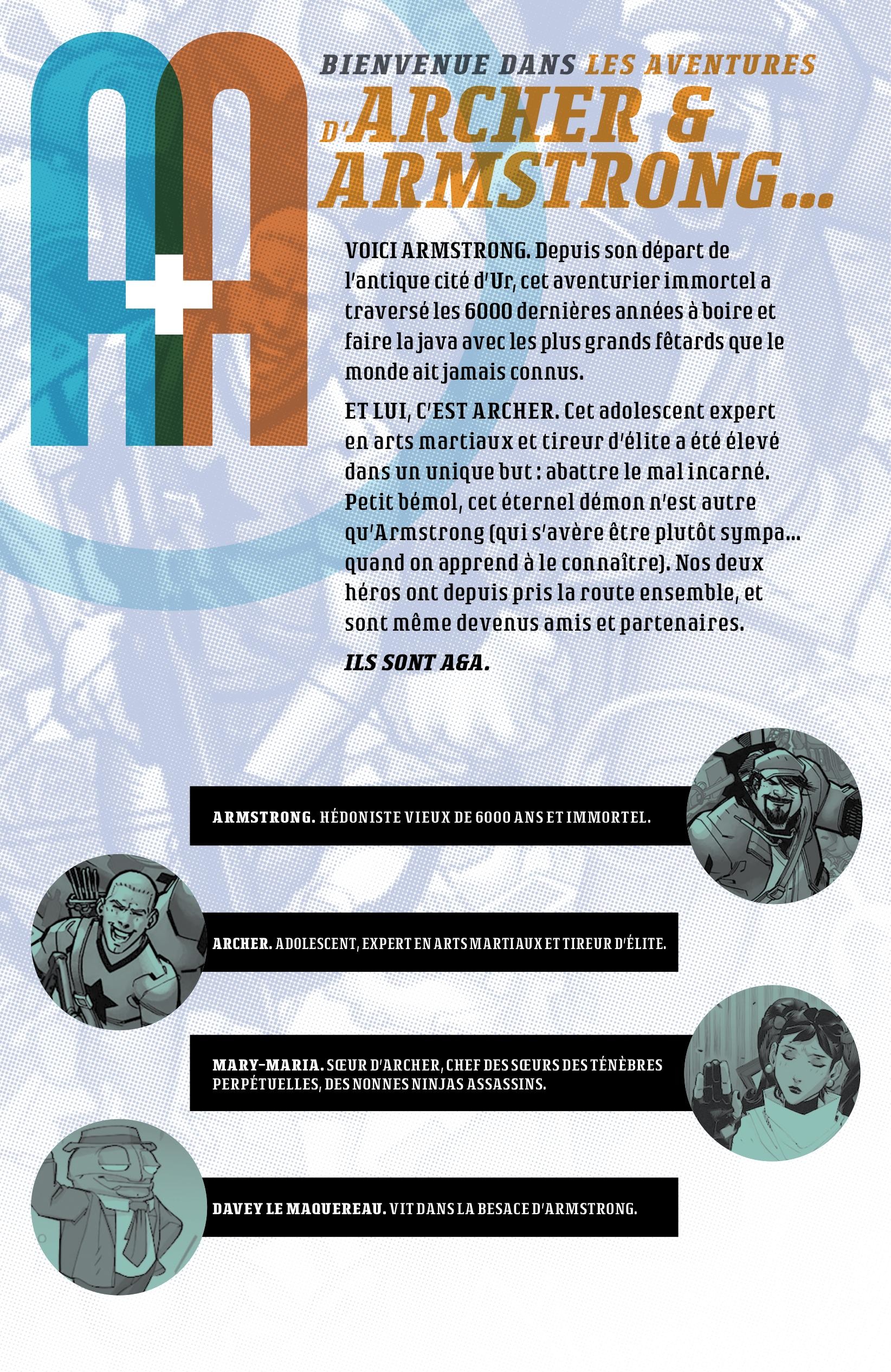 Archer est un adolescent expert en arts martiaux et tireur d’élite qui a été élevé dans un unique but : abattre le mal incarné. Petit bémol, ce démon éternel n’est autre qu’Armstrong (qui s’avère être plutôt sympa… quand on apprend à le connaître). Nos deux héros ont depuis pris la route ensemble, et sont même devenus amis et partenaires.