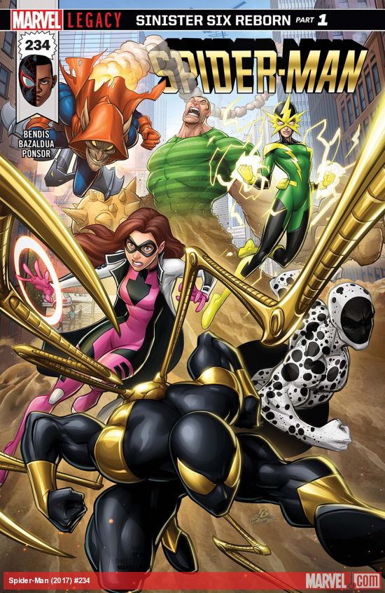 Miles' world has been shaken a lot lately, but nothing will compare to what the mysterious Iron-Spider and his brand new SINISTER SIX will do. Sandman, Hobgoblin, The Spot, Electro and Bombshell (?!) join this mystery villain to make Miles' life a living hell.