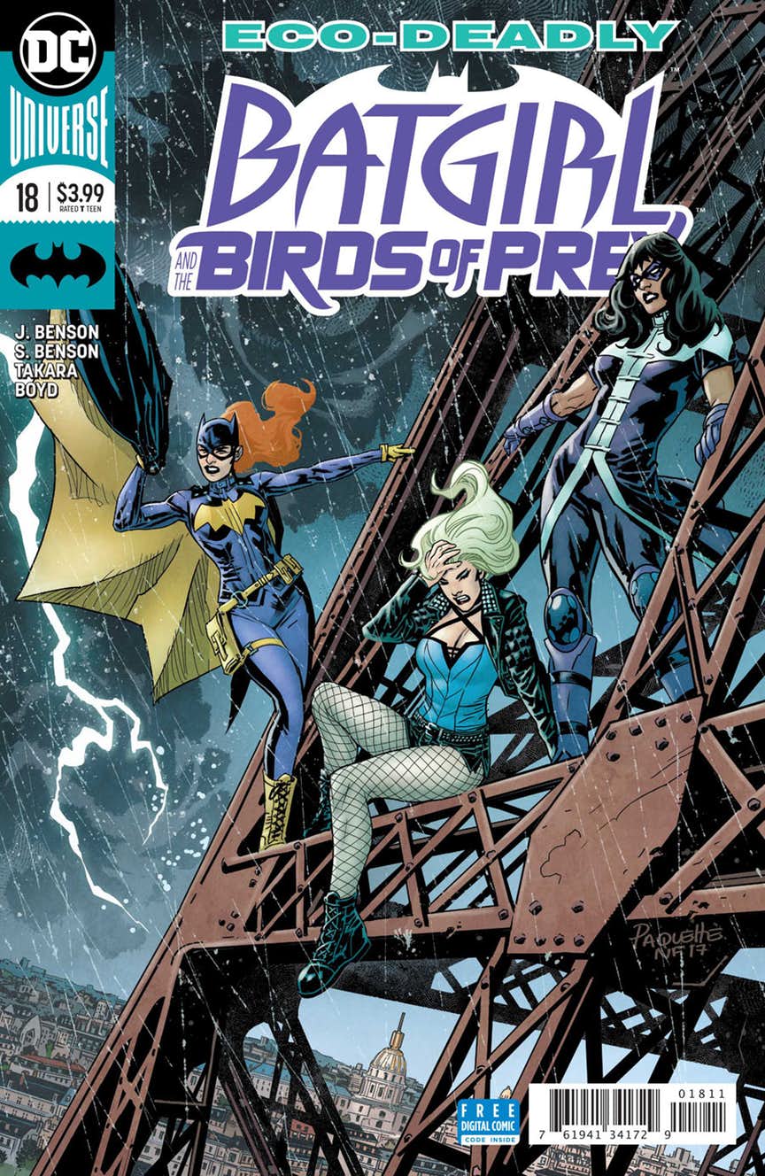 Tasked with a new mission by the secretive Spyral, Huntress enlists Batgirl and Black Canary to help infiltrate an exclusive tech conference. Searching for an arms dealer masquerading as a tech investor, the Birds of Prey must uncover the mysterious plans for Weather Wizard’s missing wand before the City of Lights finds itself plunged into permanent darkness.