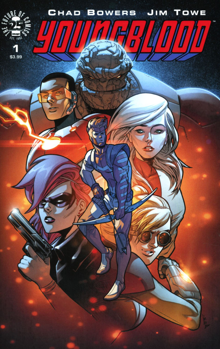 25 years ago, YOUNGBLOOD launched the Image Revolution and turned the comics world on its head! Now the original blockbuster hit series returns with an all-new cast and a brand-new mission! When a young hero goes missing, his friend’s search for answers leads to some unexpected allies. Together, they'll do whatever it takes to find him…even if it means resurrecting the world’s most infamous super-team. Gear up, strap in, and get ready to rediscover comics’ most extreme universe with creators CHAD BOWERS (X-Men ‘92, Deadpool: Bad Blood) and newcomer JIM TOWE!