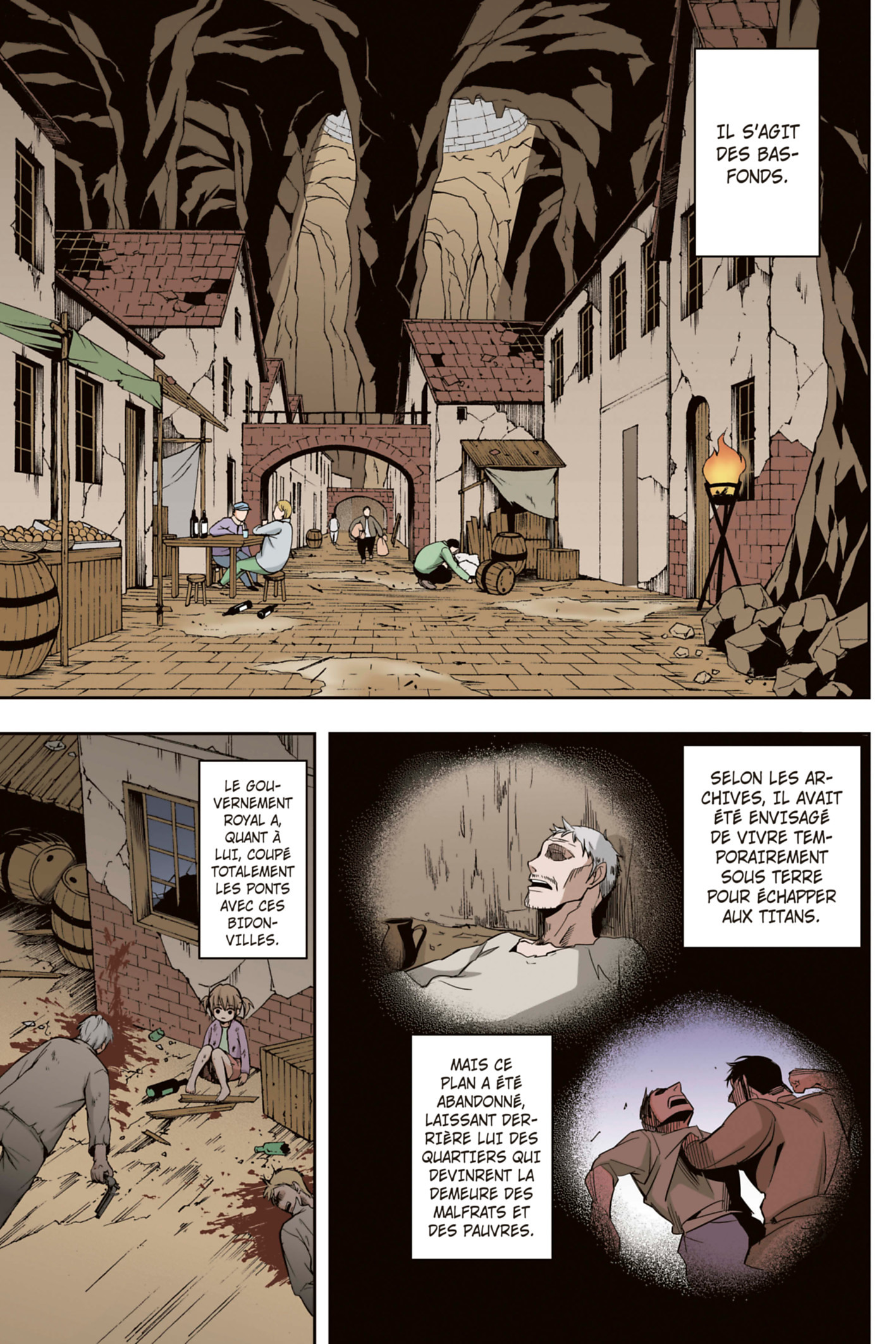 Un groupe de bandits équipés de harnais de manœuvre tridimensionnelle sévit dans les Bas-fonds de la capitale. Leur leader aurait même largement le niveau d’un militaire du Bataillon d’exploration... Le chef d’escouade Erwin Smith décide alors de proposer un marché à cet homme du nom de Livaï. Comment un voyou a-t-il pu devenir le plus fort de tous les soldats ?
