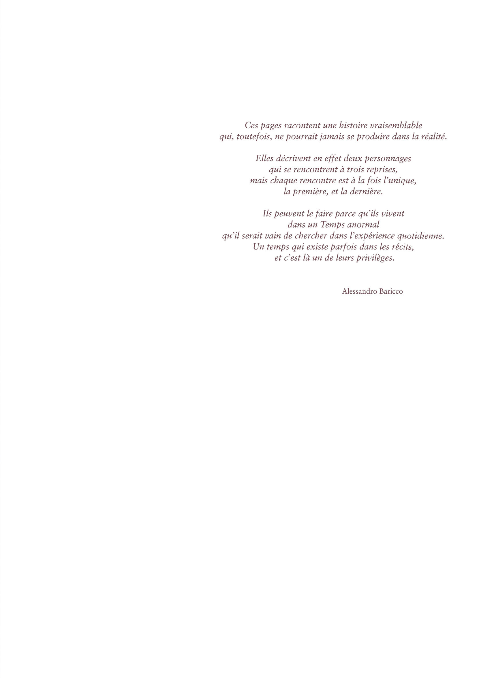 Trois histoires nocturnes qui se concluent à l’aube et qui marquent, chacune à sa façon, un nouveau départ. Trois facettes qu’Alessandro Baricco rassemble en un récit hypnotique et puissant, non dépourvu d’élégance et même de sensualité.