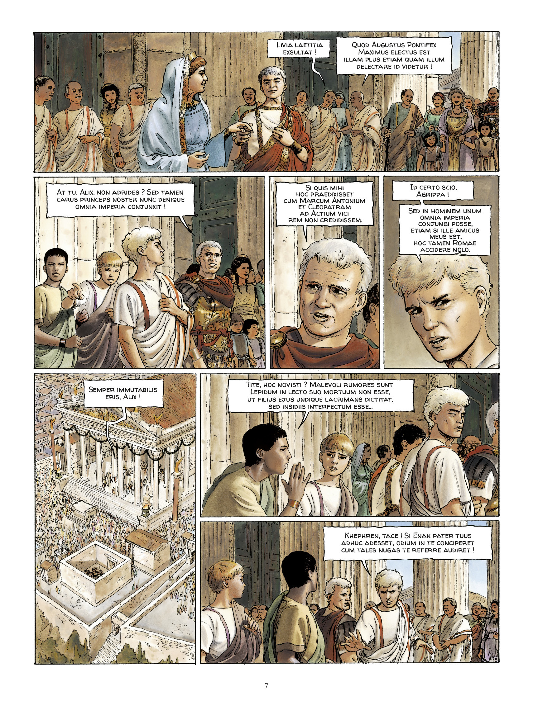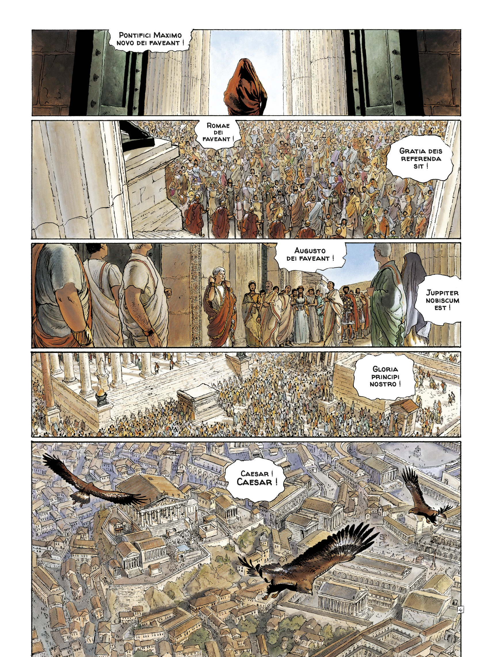 – 12 avant Jésus-Christ. Marcus Aemilius Lepidus, grand pontife de Rome, et Agrippa, successeur désigné du puissant empereur Auguste, sont mystérieusement assassinés par des aigles qui leur déchirent les entrailles. Alarmé par ces événements, Auguste charge son vieil ami le sénateur Alix Gracchus d’enquêter discrètement. Une enquête qui conduira Alix, assisté de ses fils Titus et Khephren (le propre rejeton d’Enak, qu’Alix a adopté après la disparition de celui-ci) sur la piste de l’énigmatique maître des oiseaux. Pourtant, le danger persiste à se rapprocher encore de l’empereur en personne, de plus en plus près. Et Alix va finalement découvrir que le plus dangereux des rapaces se niche au cœur même de Rome, là où nul ne pouvait le soupçonner…