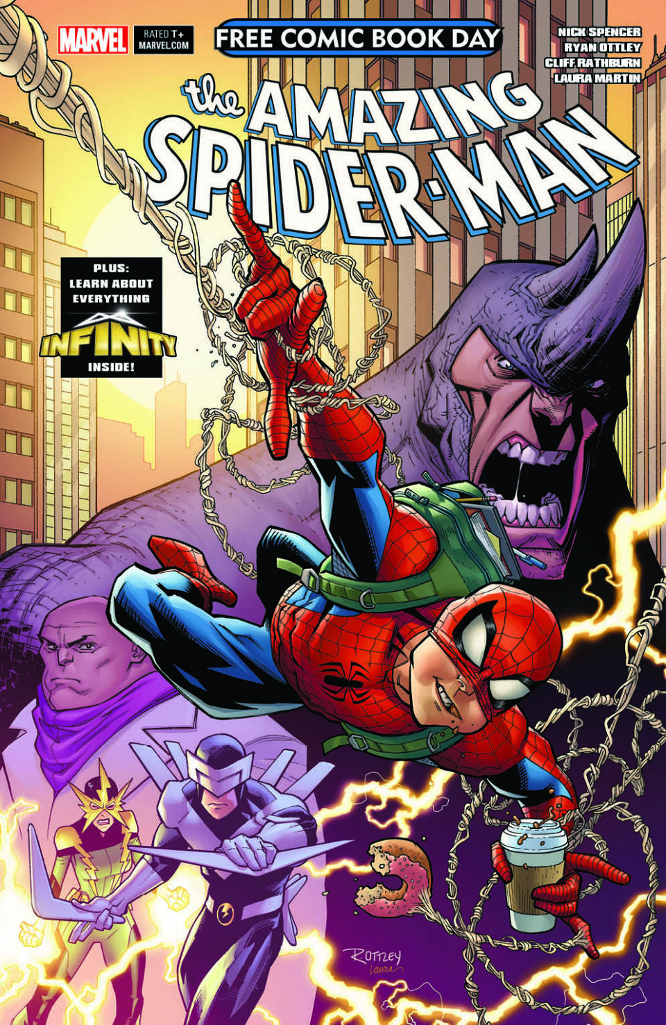Free Comic Book Day AMAZING SPIDER-MAN, by Nick Spencer, Ryan Ottley, Cliff Rathburn, and Laura Martin, kicks off another new creative team’s run with an iconic Marvel super hero—Peter Parker! Artist Ryan Ottley makes his Marvel debut alongside renowned writer Nick Spencer ahead of their July 11 launch of AMAZING SPIDER-MAN #1!