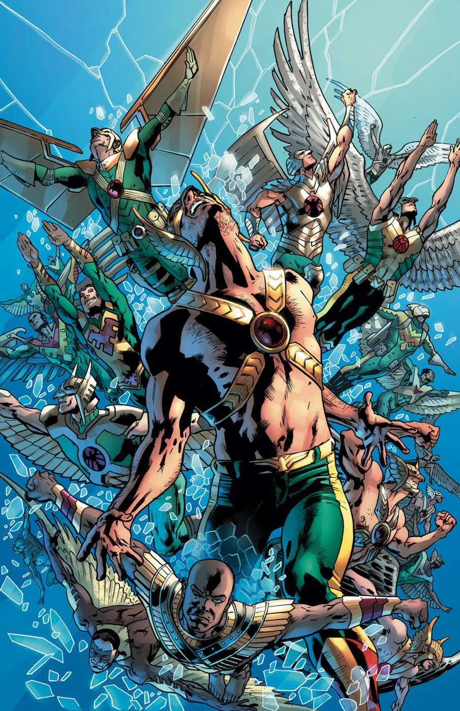 The origin of Hawkman revealed! Rocketing across the cosmos in his newly re-covered spaceship, Carter Hall is en route to the next stop on his adventure through time and space. He doesn’t have Netflix to pass the time, but he does have something even better. Locked within the ship’s memory banks is the truth behind Carter Hall’s reincarnation ability, as well as his connection to the Deathbringers—giant, winged beings of immeasurable power on their way to destroy Earth!
