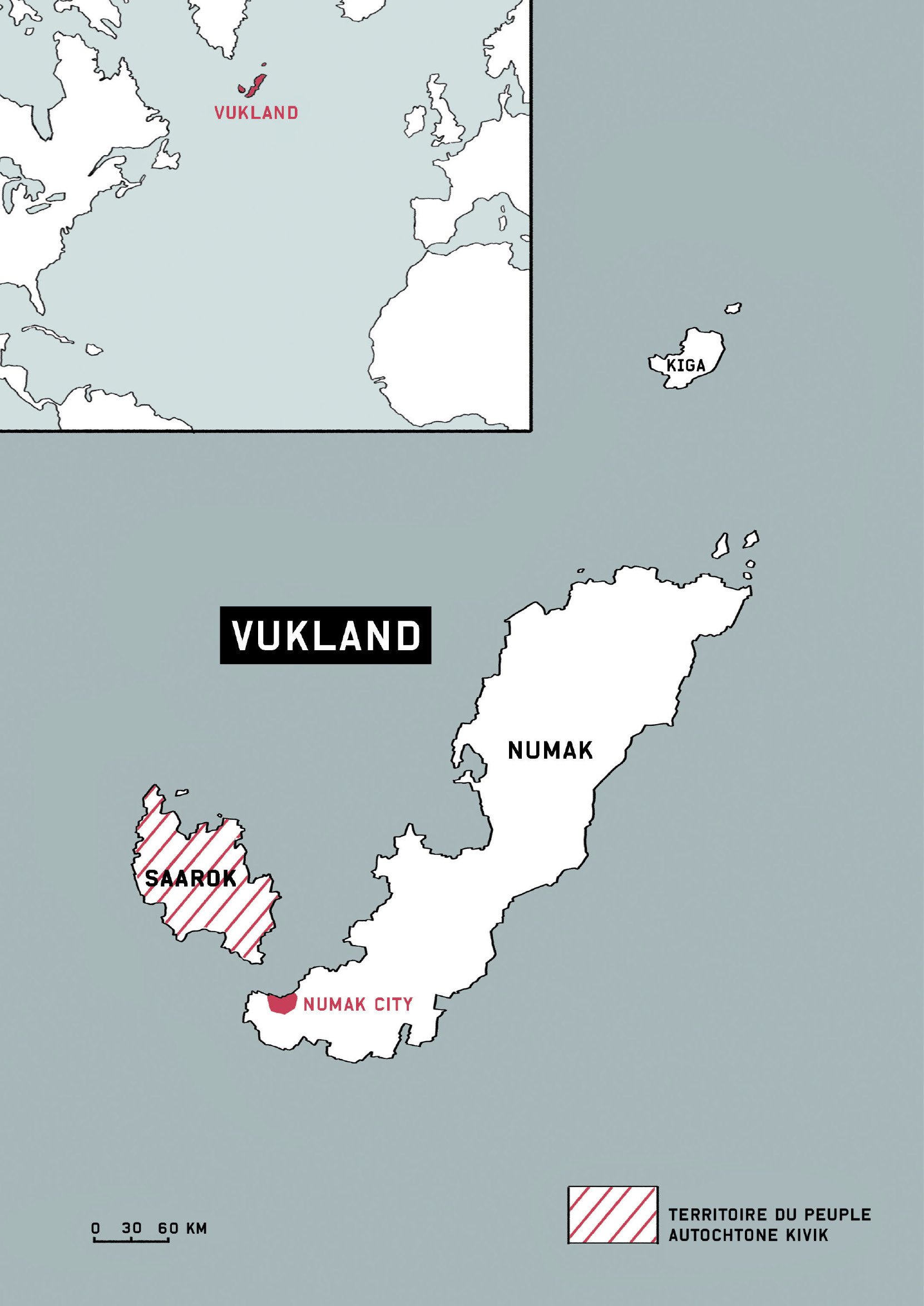 Le Vukland est un archipel de l’Atlantique nord – à mi-chemin entre l’Irlande et les États-Unis – dont la colonisation s’est effectuée au dépend du peuple natif, les Kiviks. Leur berceau historique, l’île de Saarok, jouit encore d’une certaine autonomie, menacée par des tensions avec le gouvernement autours du projet de grand barrage.