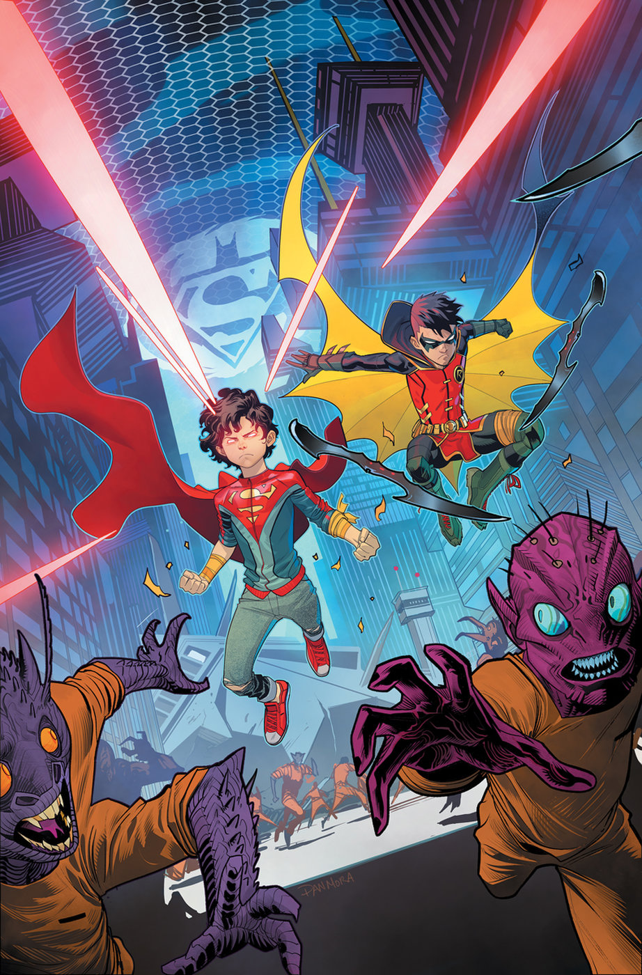 Incarcerated on the prison planet of Takron-Galtos, Superboy and Robin face off against their fellow inmate Rex Luthor and the newest members of the Gang! But Robin has a plan, and it involves a piece of glittering jewelry called a Green Lantern ring! Be here for the start of “No Evil Shall Escape Their Sight”!