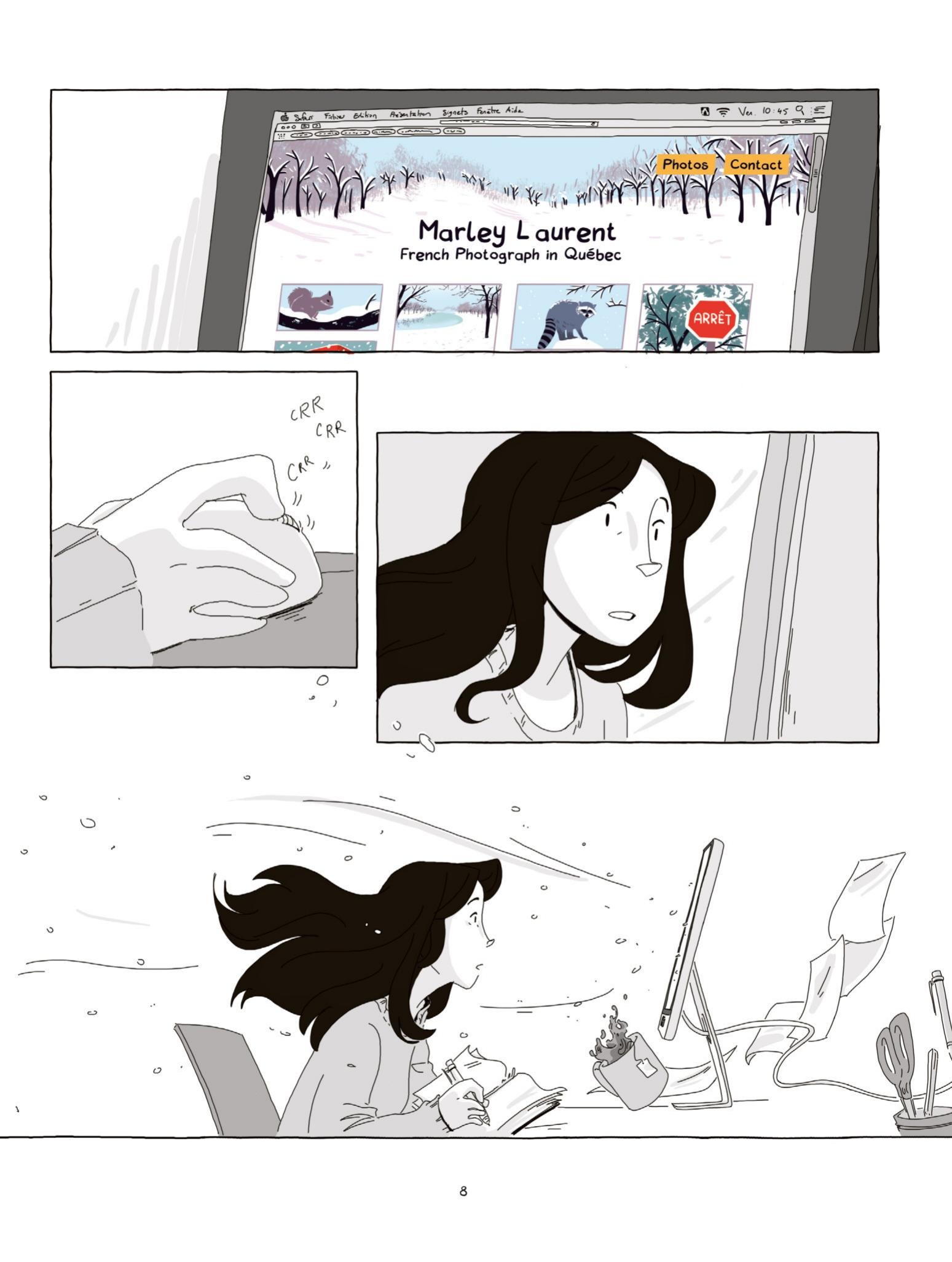 7Cet album est un exercice à 4 mains tout à fait passionnant puisque cette histoire d'une rencontre via internet entre 2 jeunes femmes, l'une à Périgueux en France et l'autre à Montréal au Canada, a été scénarisé et dessiné par 2 jeunes et brillantes autrices. Tout a commencé par une rencontre sur internet entre les 2 autrices et le projet s'est mis en route.Manon Desveaux dessine en N&B la fra...