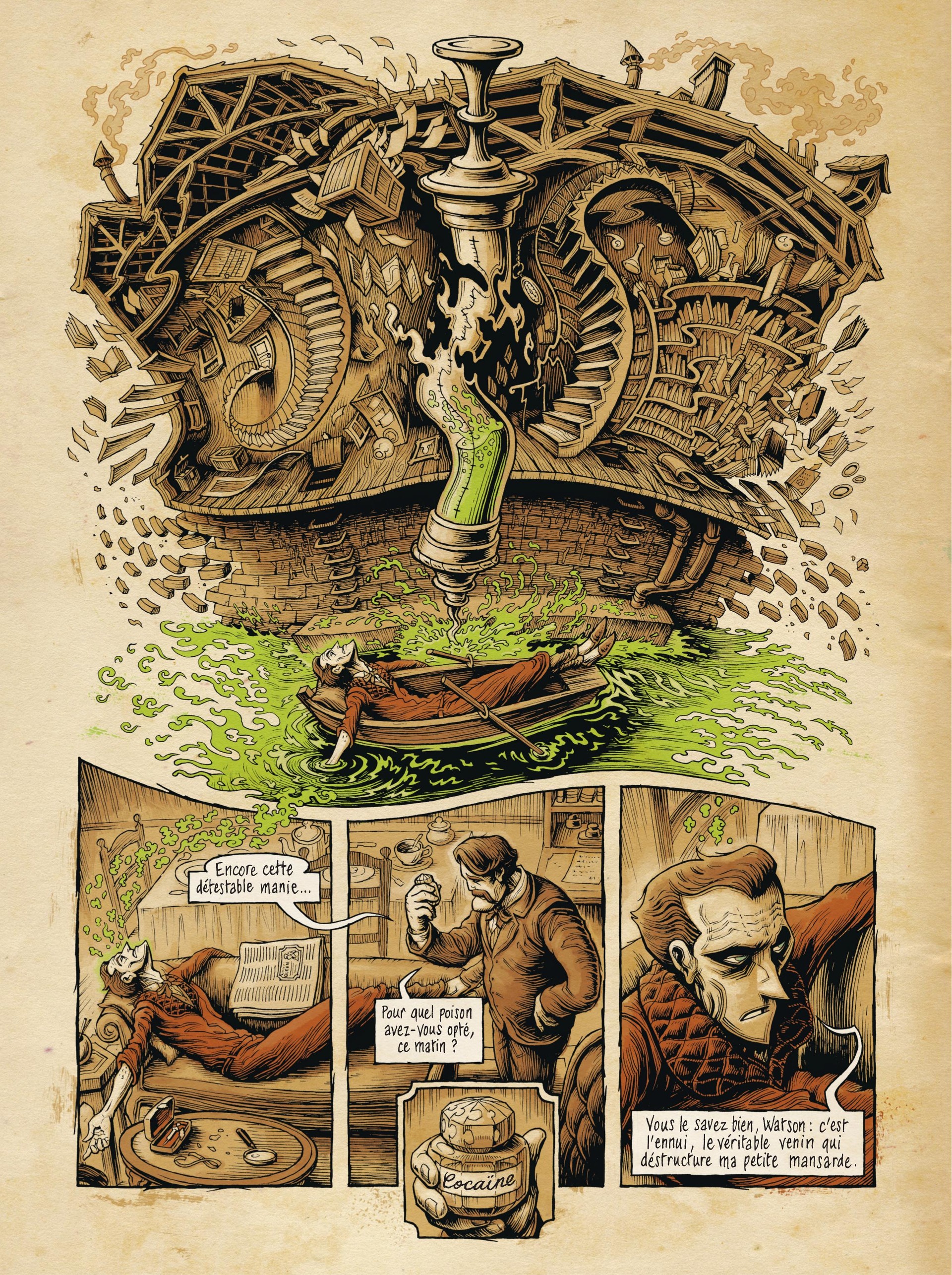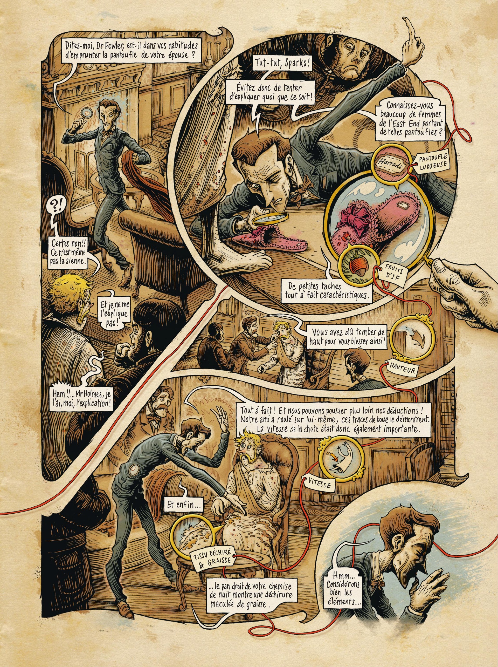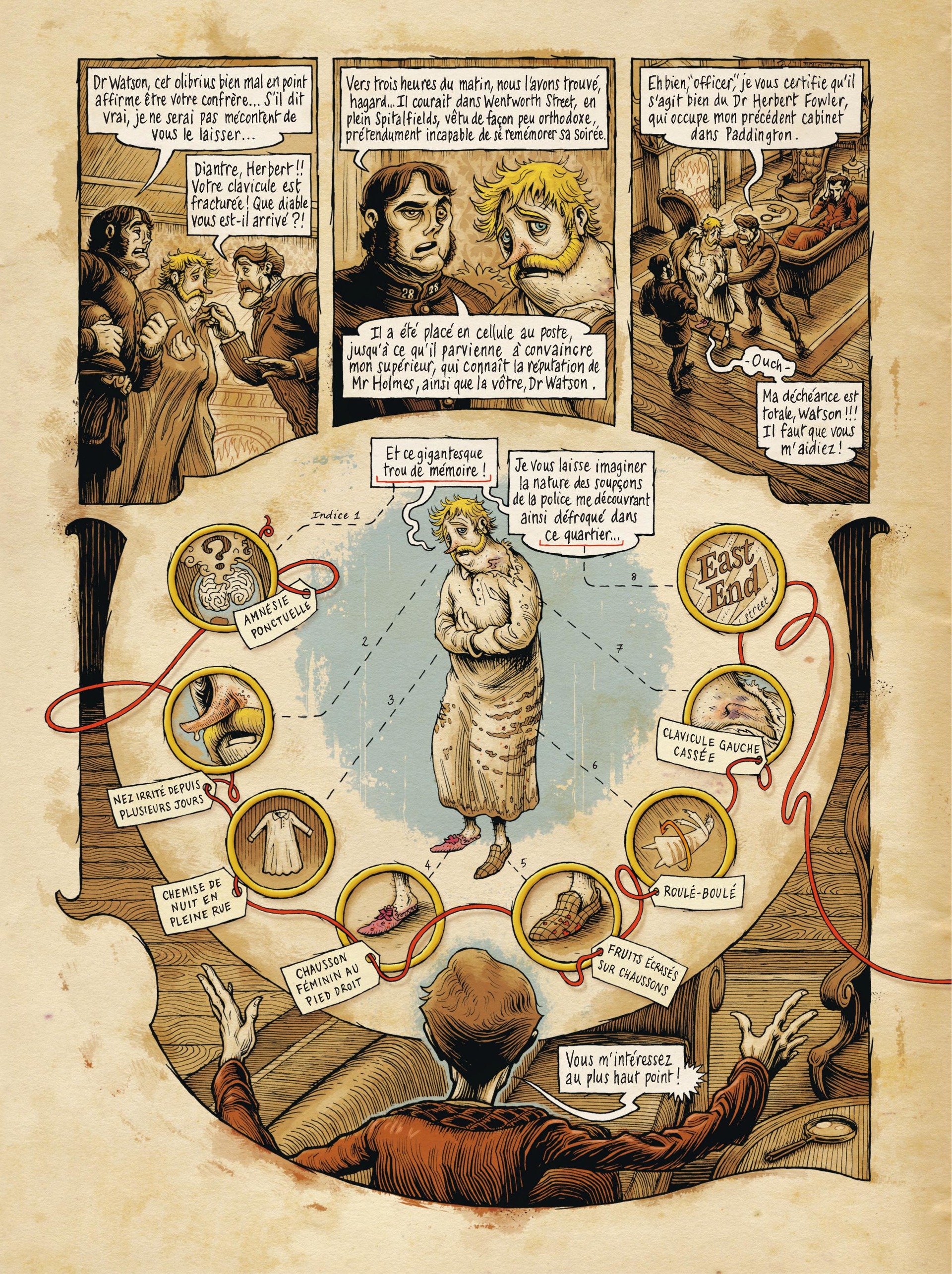 L'idée intéressante de ce diptyque, car j'imagine que le 2e tome la suivra aussi, est cette plongée dans le cerveau du célèbre détective pour y suivre les méandres de ses pensées. Cela mis à part, le scénario est une enquête policière plus ou moins classique.L'idée de plonger dans le cerveau d'une personne en images n'est pas totalement nouvelle puisque Benoit Dahan l'avait déjà fait avec Erwan Co...