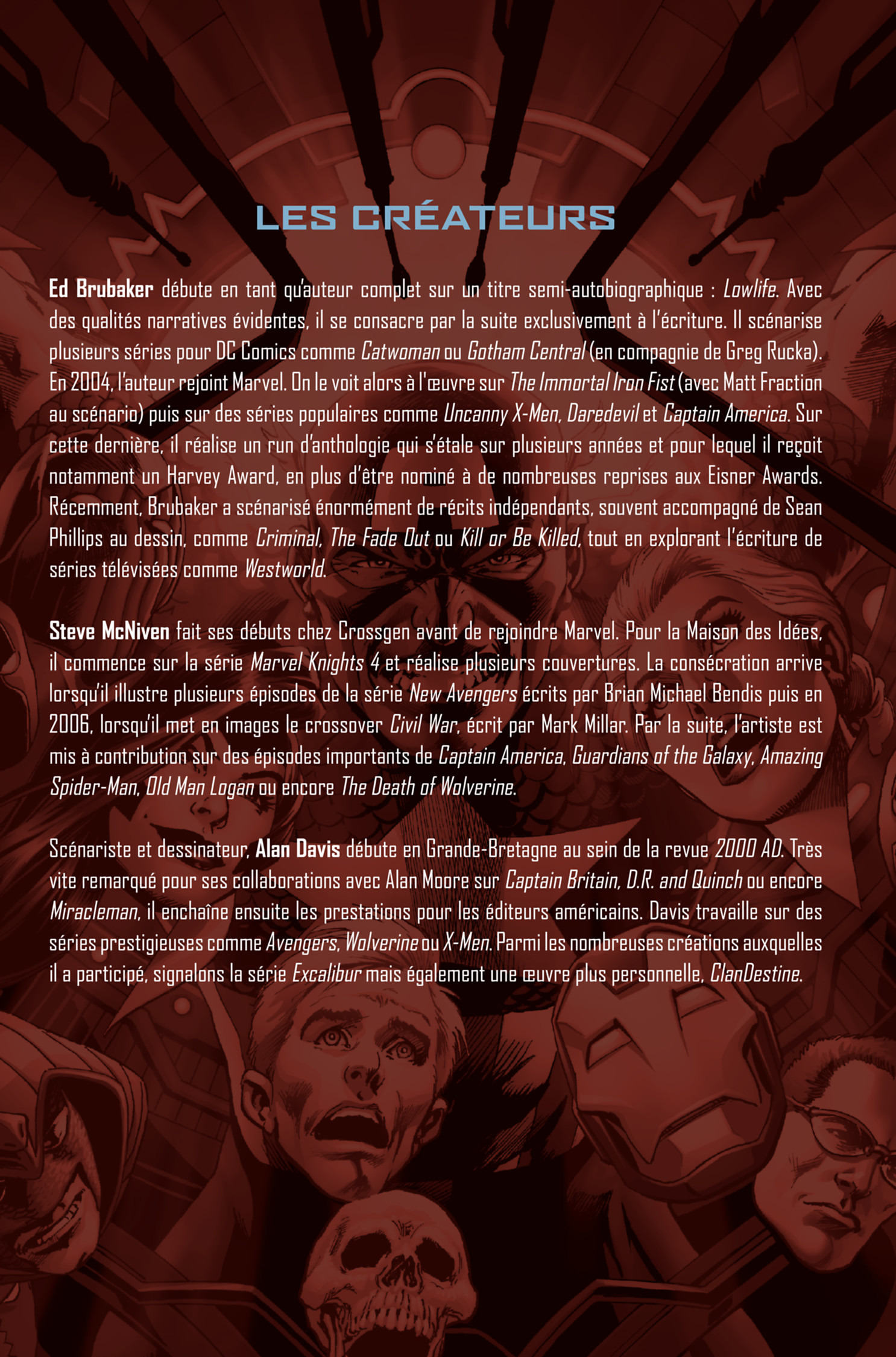 Steve Rogers est de nouveau Captain America. L’enterrement d’un vieil ami lance le héros dans une course contre la montre où se joue le sort du monde. La Légende Vivante devra aussi affronter l’Hydra avec l’aide du Faucon et de Sharon Carter.Pour ce nouveau numéro 1 d’Ed Brubaker, il est accompagné par Steve McNiven (Civil War) et Alan Davis (Thanos).