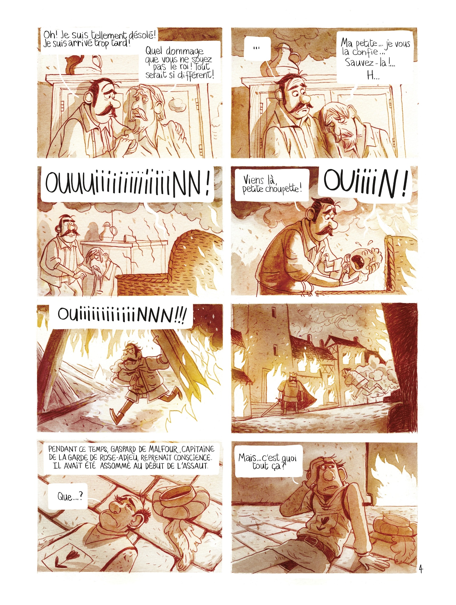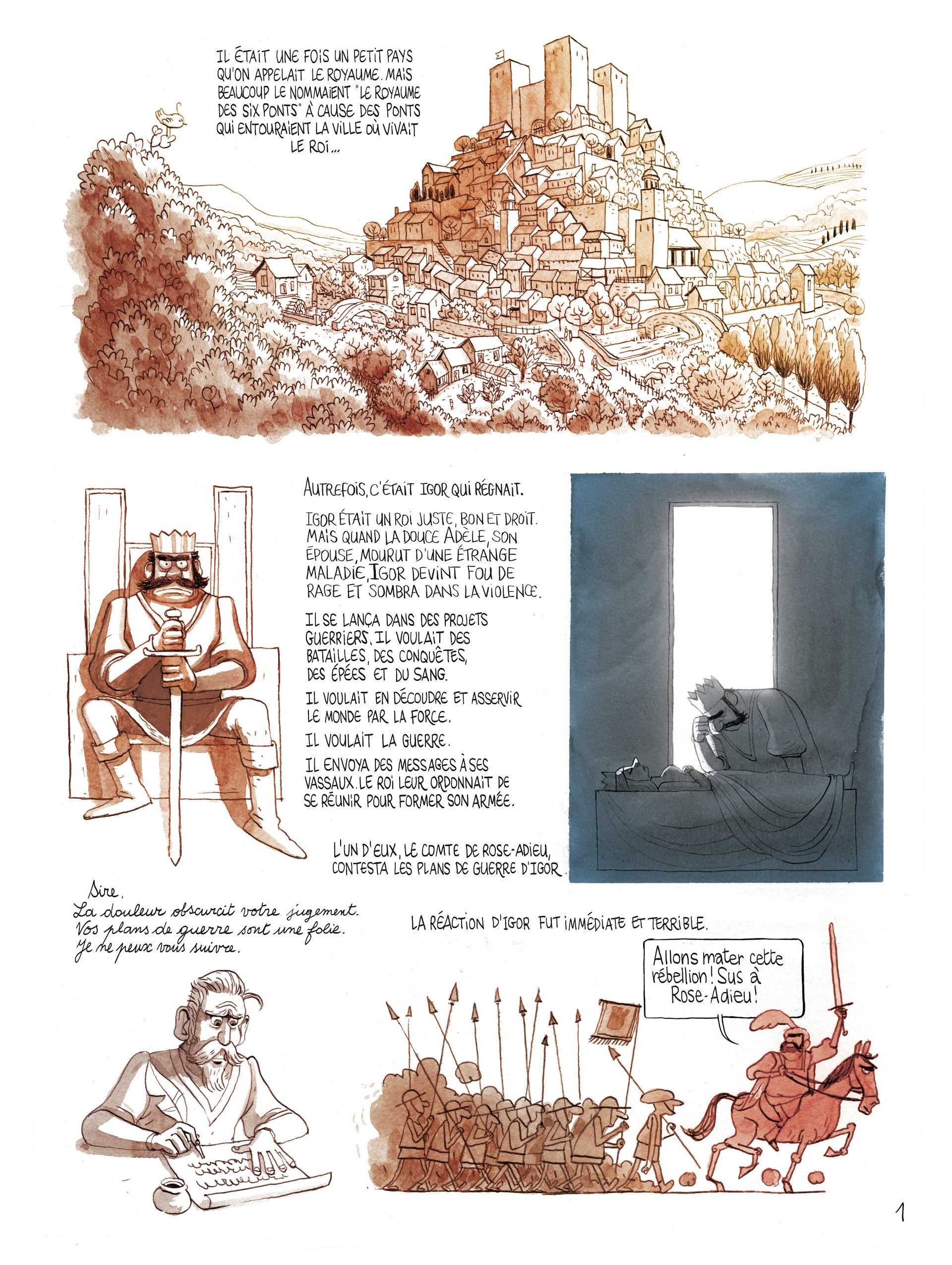 Il était une fois un royaume dont le roi était devenu fou suite à la mort de son épouse adorée. Ce roi, Igor, devint colérique et violent. Quand il entreprit de mener une guerre de conquête, un de ses vassaux, le comte de Rose-Adieu, tenta de s'opposer à ses projets. La réaction du monarque fut brutale : il envahit le comté, pilla et détruisit tout. Seule Blanche-Fleur, la petite fille du comte, fut épargnée, sauvée par le frère du roi, le prince Serge. Puis elle disparut sans que personne ne sache ce qu'elle était devenue... Près de deux décennies plus tard, c'est le bon roi Serge qui règne sur le royaume des Six-Ponts. Et dans ce royaume où il fait bon vivre, tout le monde s'apprête à fêter dignement le mariage de la princesse Cécile. Anne, la tavernière, se réjouit de l'événement, non seulement parce qu'elle a été élevée avec Cécile, mais aussi parce que ce mariage va lui permettre de relancer sa taverne. Mais Anne est aussi la protégée du roi qui ne peut rien lui refuser. Ce qui suscite la jalousie de la reine qui déteste Anne, complote contre elle et ne sera satisfaite que quand cette "petite intrigante" aura été éliminée.