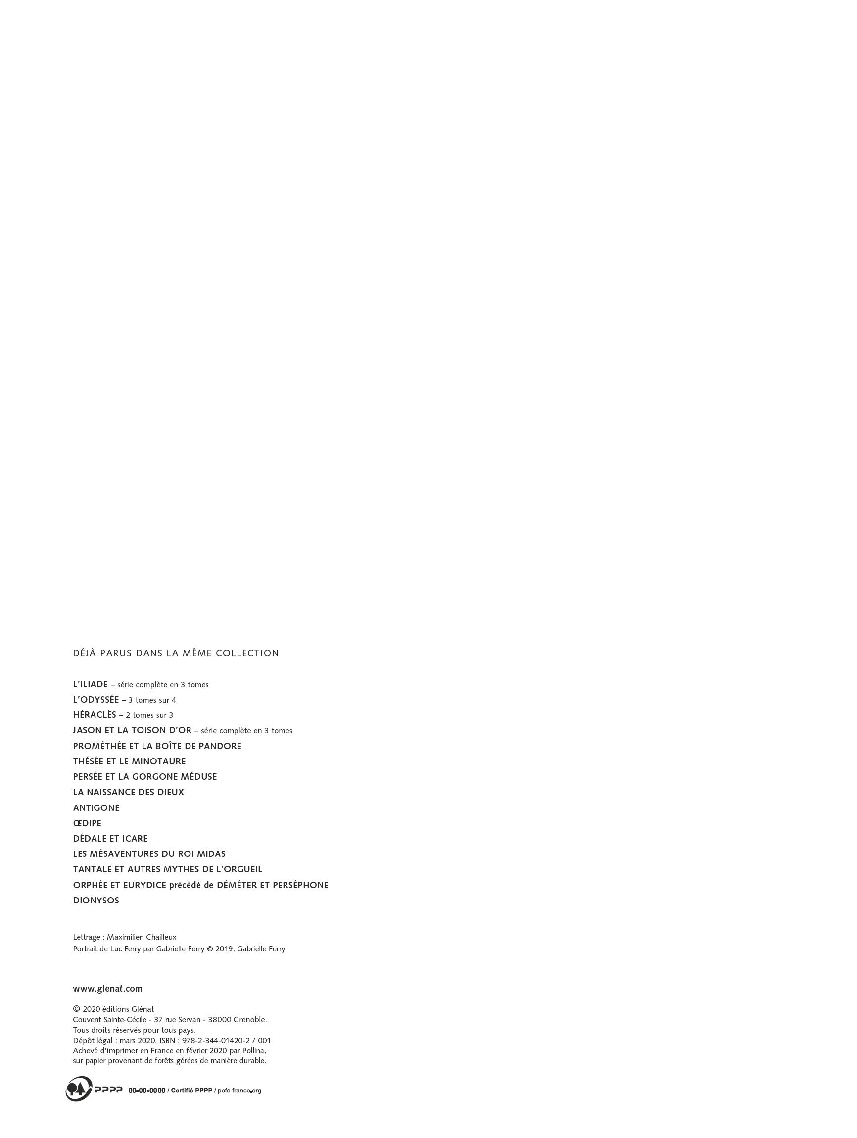 Fils de Zeus et de Sémélée, une mortelle de Thèbes, Dionysos est né dans des circonstances aussi exceptionnelles que dramatiques. Grandissant en secret auprès des dieux, protégé du courroux d’Héra, il passera la première partie de son existence à trouver la place qui lui est due en parcourant le monde. Son culte sera caractérisé par de grandes cérémonies orgiaques auxquelles se livreront ses cohortes de fidèles féminines. Mais si Dionysos sait se montrer bon envers les siens, leur offrant le savoir de la culture du vin et le plaisir de s’abandonner à leurs pulsions, il sera impitoyable avec ses ennemis ou ceux qui ne reconnaissent pas sa nature divine, les faisant plonger dans une folie meurtrière et autodestructrice. Aussi craint que respecté, Dionysos, dieu de la vigne et des excès, est probablement l’une des divinités les plus fascinantes et les plus insaisissables de toute la mythologie grecque. Ce nouvel album de la collection « La Sagesse des mythes » nous offre les clés pour mieux comprendre les origines et la nature profonde de cette figure majeure du Panthéon.