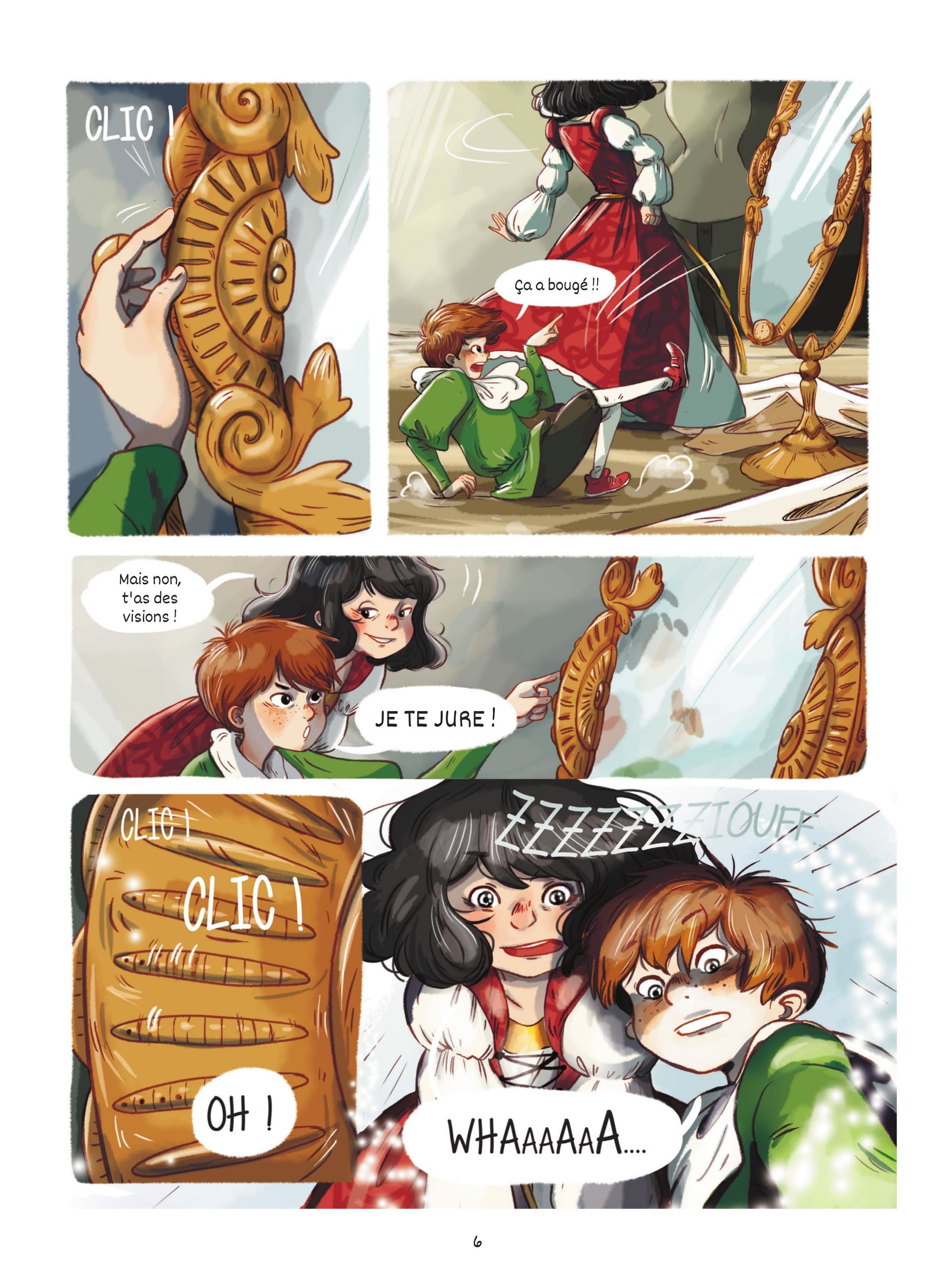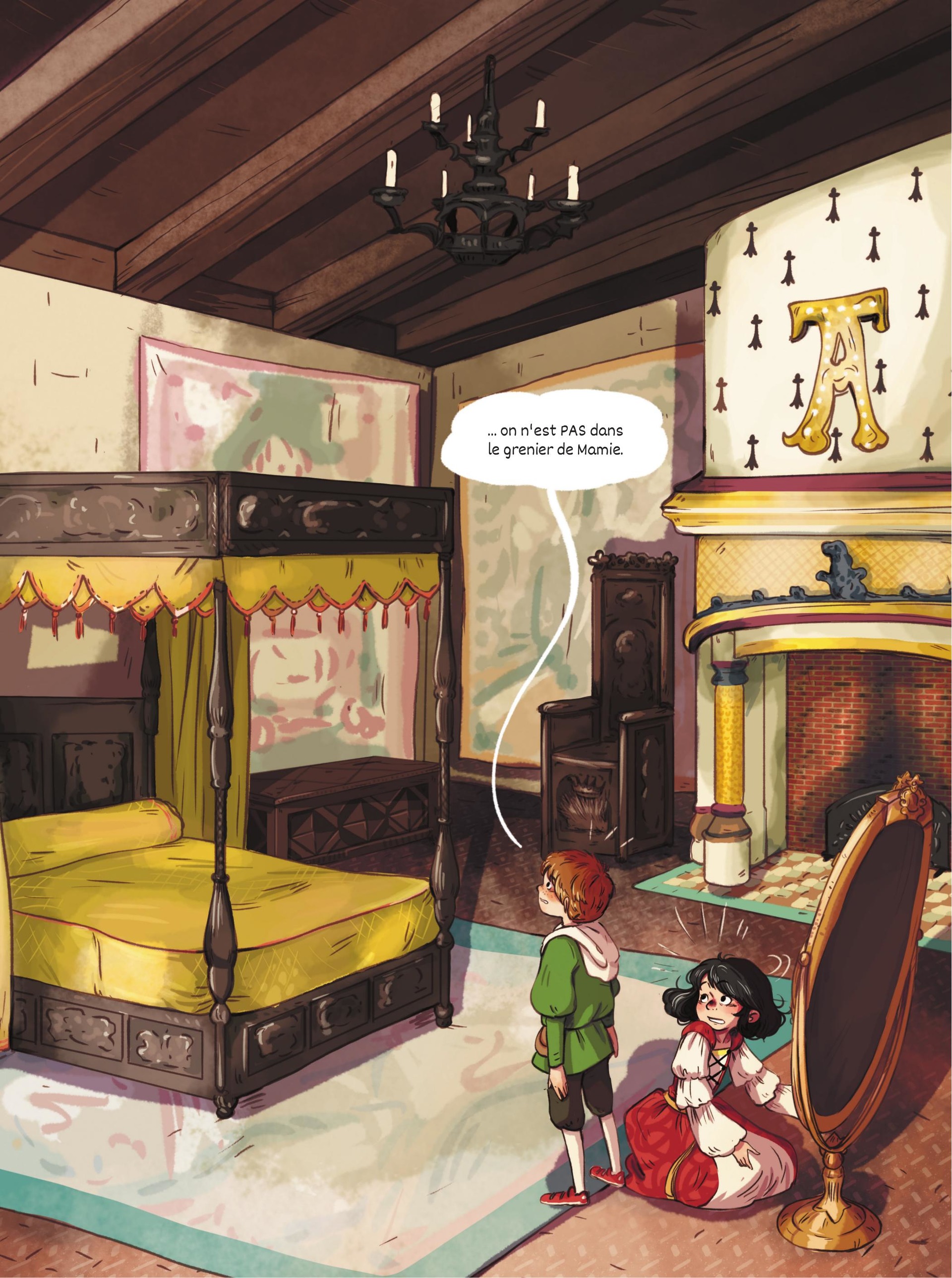 Le carnaval approche ! Marie et son petit frère Léo rendent visite à leur grand-mère, ancienne costumière de théâtre et couturière aux doigts de fée. Dans le grenier, au fond d'une vieille malle, ils trouvent leur bonheur : pour Léo un costume digne de la Renaissance et pour Marie une superbe robe de princesse. Il ne manque qu'un miroir pour s'admirer. Léo en trouve un sous un vieux drap. Sans le vouloir, il actionne un mécanisme qui leur ouvre un mystérieux passage... dans l'espace et le temps ! Les enfants sont aspirés et transportés le 17 mai 1514, dans la chambre de Claude de Bretagne, la veille de son mariage avec François d'Angoulême. Et ils tombent à pic : le Côte-de-Bretagne, futur joyau de la couronne, vient d'être dérobé !