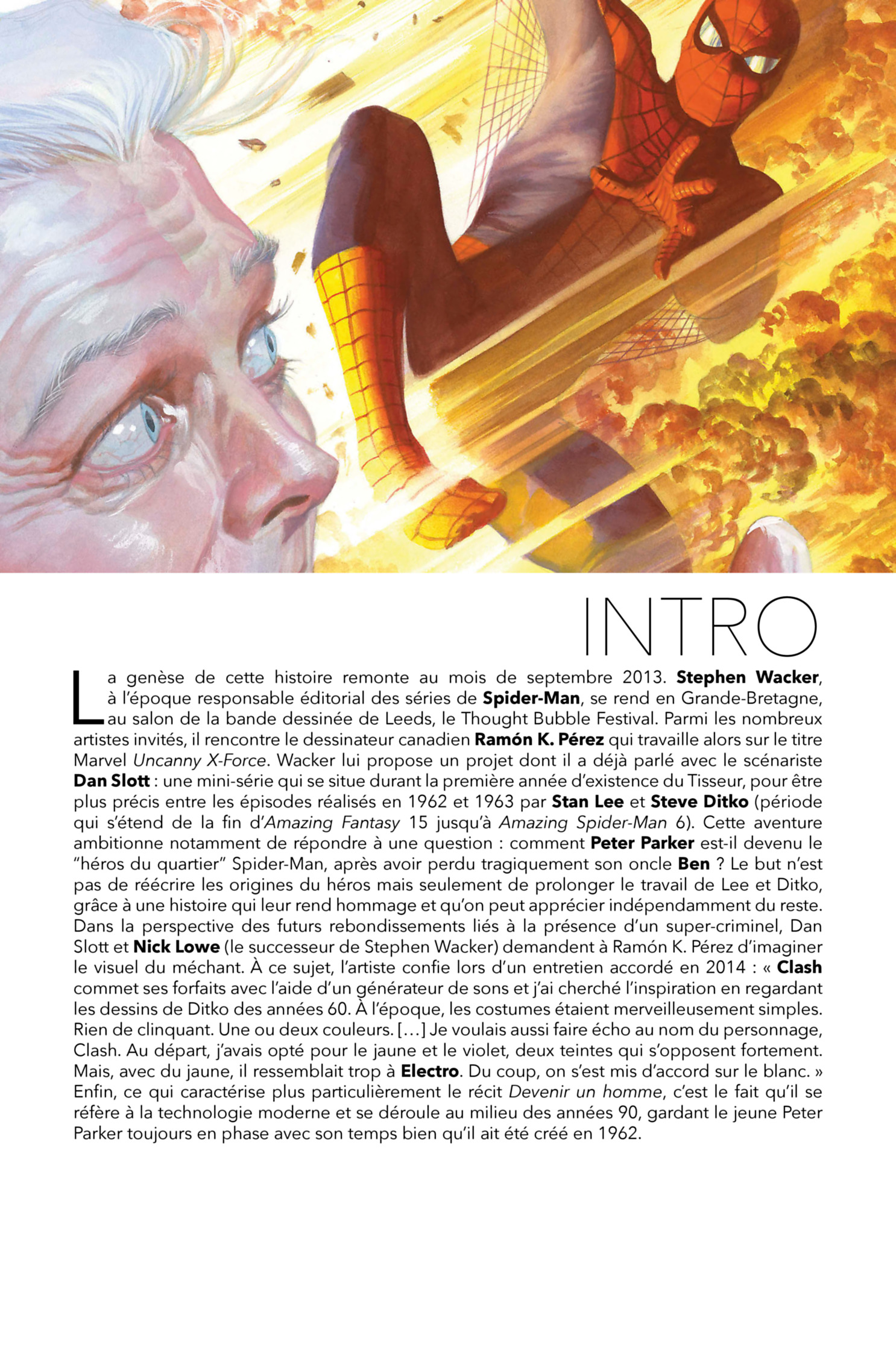 Qui est donc ce super-criminel surnommé Clash ? Pourquoi son destin est-il lié à celui de Peter Parker ? Découvrez une nouvelle page de l’histoire de Spider-Man à ses débuts, dans un récit marquant et évocateur, écrit par un scénariste ayant accompagné la série Amazing Spider-Man durant presque une décennie.