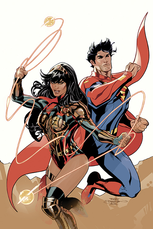 Our heroes have challenged the gods themselves to a test of bravery for the fate of the Earth. But gods are notorious cheaters, and with Superman’s powers in flux, it falls to Wonder Woman to face down the sun itself! A utopian future awaits—but only if a Kryptonian peacemaker and an Amazon warrior can put aside their differences to become the World’s Finest Heroes!
