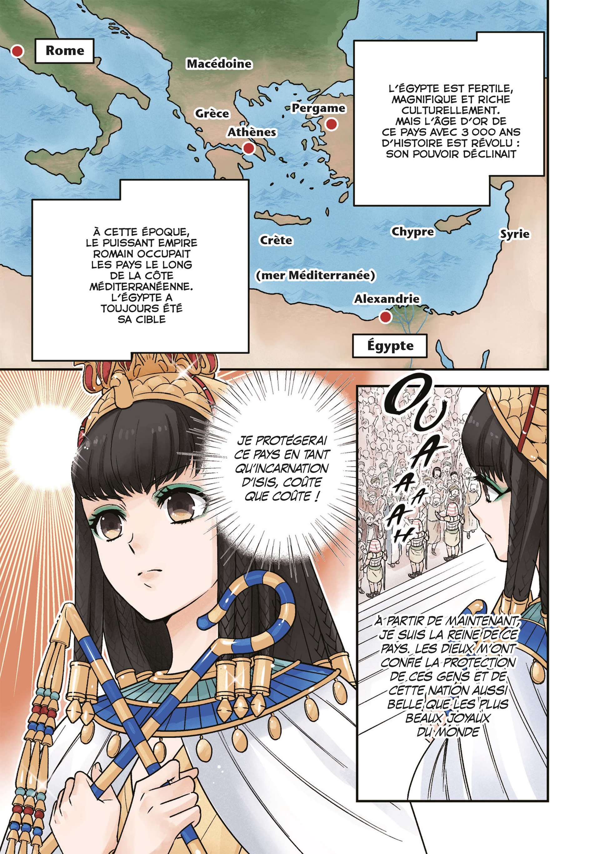 Cléopâtre est une princesse de famille royale en Égypte ancienne. Très curieuse, passionnée par l'étude de nombreuses langues étrangères et grande lectrice, elle devient une reine d'une grande beauté, très cultivée. Elle sera déterminée à protéger l'Égypte de Rome, la nation la plus puissante au monde, et ce jusqu'à sa mort.