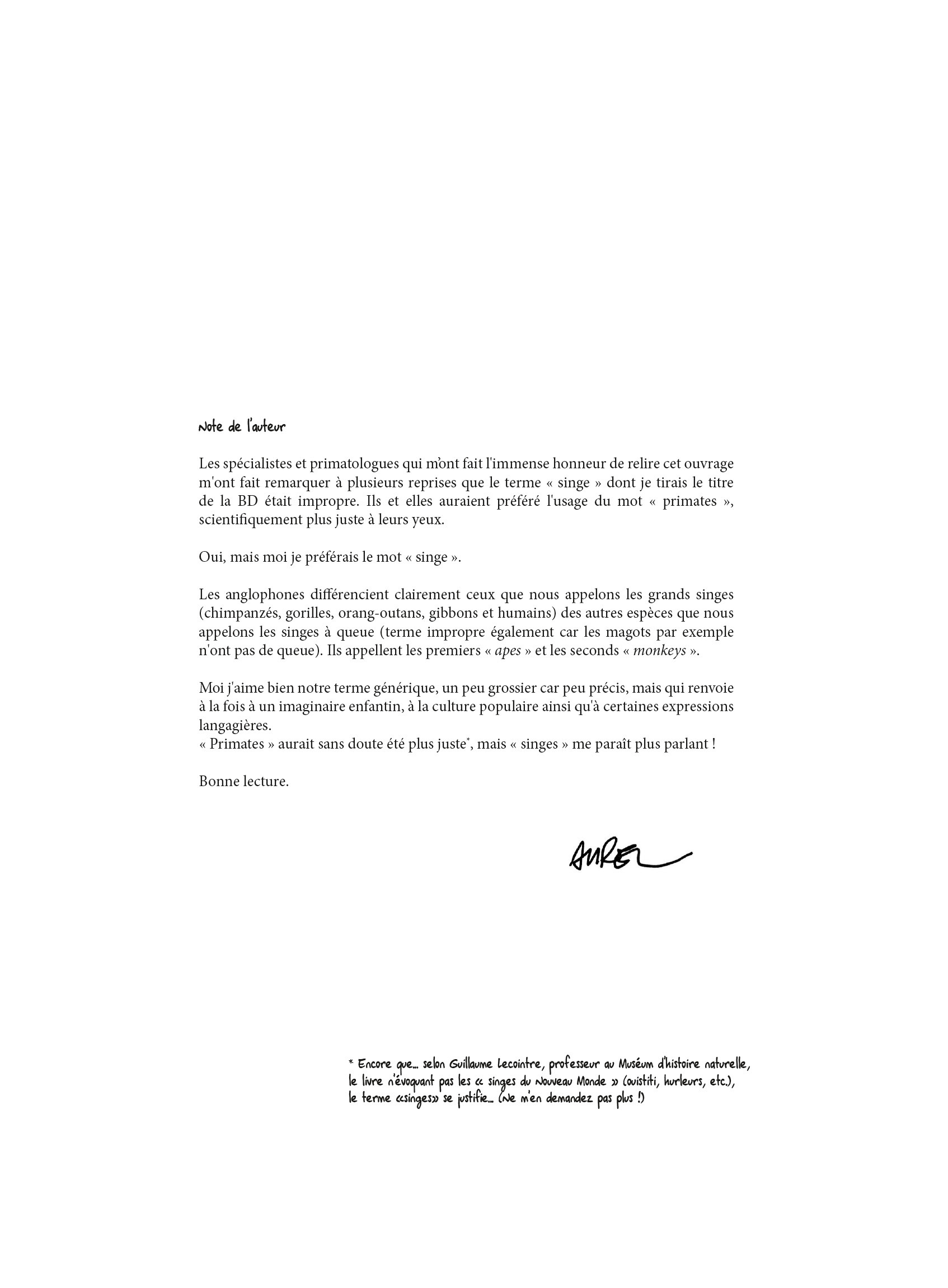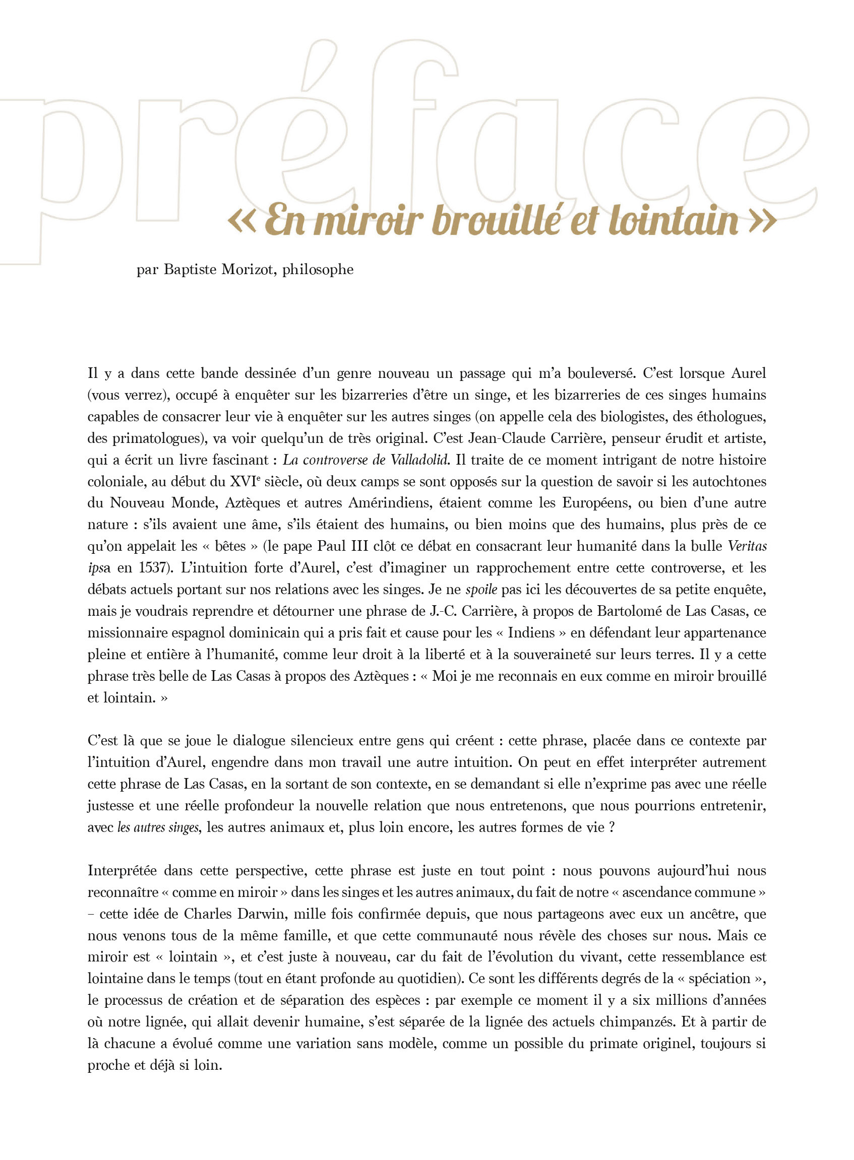 L’homme descend-t-il du singe ? Cette enquête graphique explore les rapports que nous entretenons avec nos cousins les singes. Si nous avons un ancêtre commun, nous avons suivi des branches différentes de l’évolution… Aurel est allé interviewer les plus grands primatologues (Frans de Waal, Sabrina Krief), une philosophe (Vinciane Despret) et des artistes (Patrick Bouchitey, le regretté Jean-Claude Carrière).