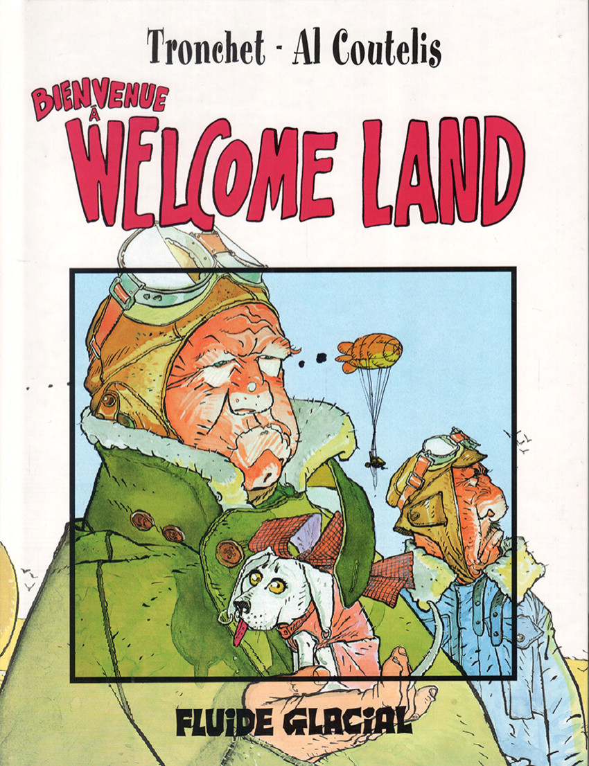 Voici le nouvel album de deux grands de la BD : TRONCHET qui a, pour une fois, laissé tomber le crayon à dessin pour écrire des histoires, et AL COUTELIS qui les a mises en images avec une verve insolente. Welcome Land est un pays imaginaire. Enfin, c'est ce que l'on espère car il a l'air très proche de notre univers citadin mais il s'y passe de drôles de choses : Les poètes sont en uniformes, réunis en brigades de choc, certains immeubles sont conçus comme des paquebots dont l'équipage est constitué de locataires, tandis qu'un mystérieux dirigeable plane au-dessus de la ville pour oberver les habitants et régenter leur vie quotidienne... A Welcome Land, on vit une vie absurde, où grandiose et médiocre se confondent car on y retrouve à chaque pas la cruauté désormais bien connue du père de Jean-Claude Tergal, pendant que Coutelis se déchaîne dans une mise en scène délirante. Pour amateurs d'univers et d'humour parallèles.
